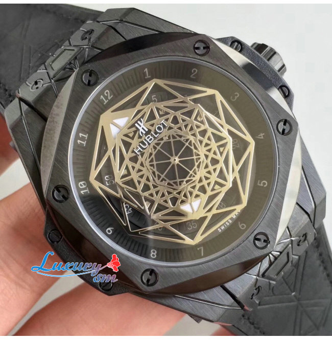 위블로 빅뱅 상 블루/기하 학적인 블랙 다이얼.