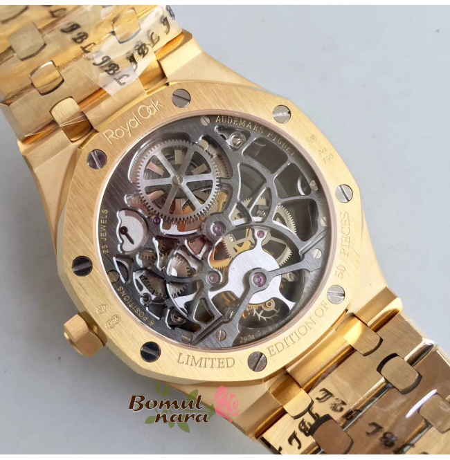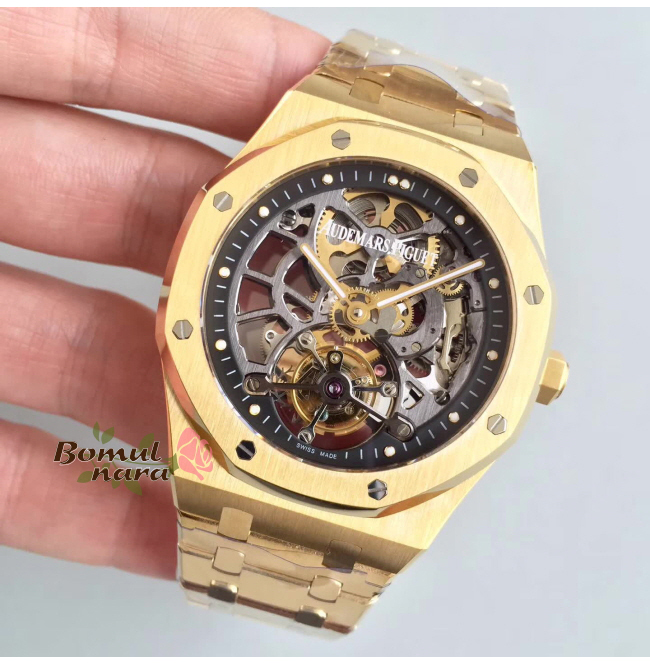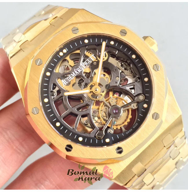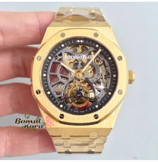 [스페셜오더]Audemars Piguet-오데마 피게 로얄 오크 뚜르비옹 엑스트라-틴 오픈워크 옐로우 골드 남성시계41mm