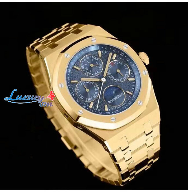 [스페셜오더]Audemars Piguet-오데마 피게 로얄 오크 퍼페츄얼 캘린더 옐로우 골드 블루 시계 41mm