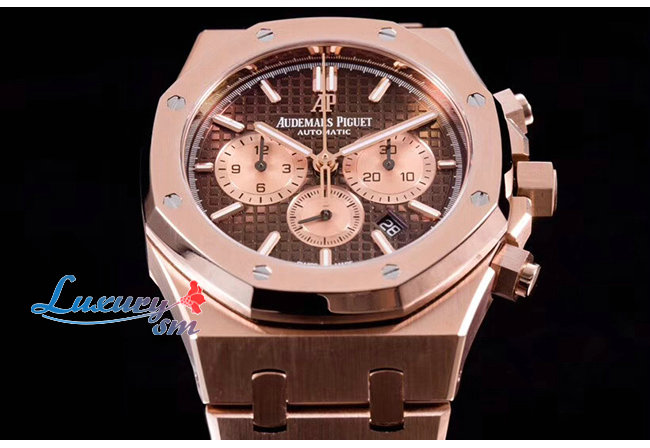 [AP전문OM팩토리][스페셜오더]Audemars Piguet-오데마 피게 로얄 오크 셀프와인딩 크로노그래프 핑크골드 브라운다이얼 시계41mm