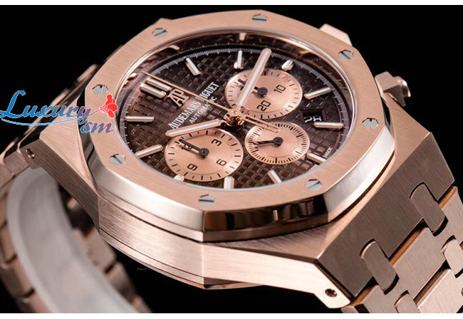 [AP전문OM팩토리][스페셜오더]Audemars Piguet-오데마 피게 로얄 오크 셀프와인딩 크로노그래프 핑크골드 브라운 다이얼 시계41mm
