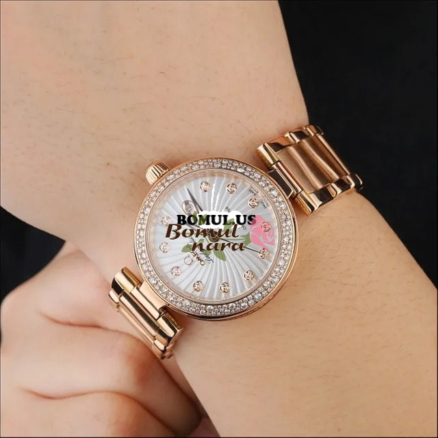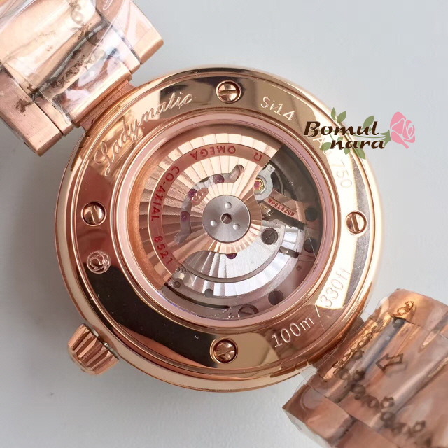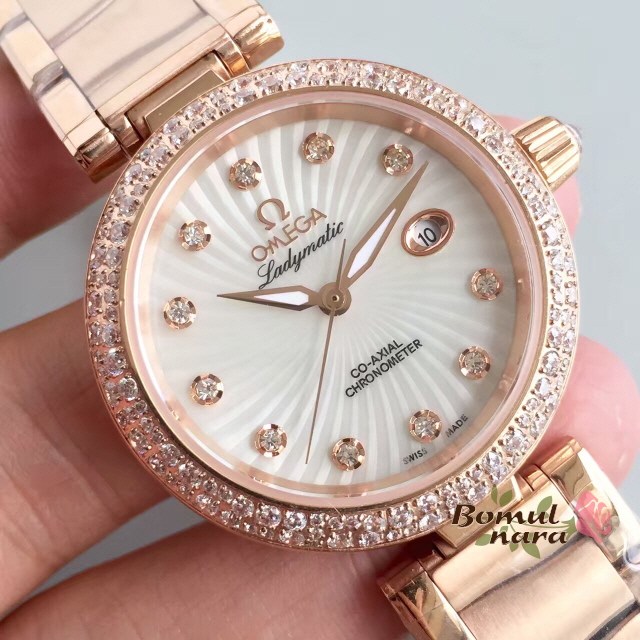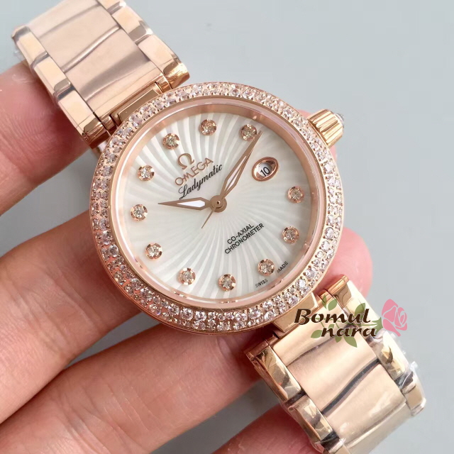 [스페셜오더]OMEGA-오메가 드빌 레이디매틱 레드 골드 다이아 인덱스 화이트 여성시계 34mm