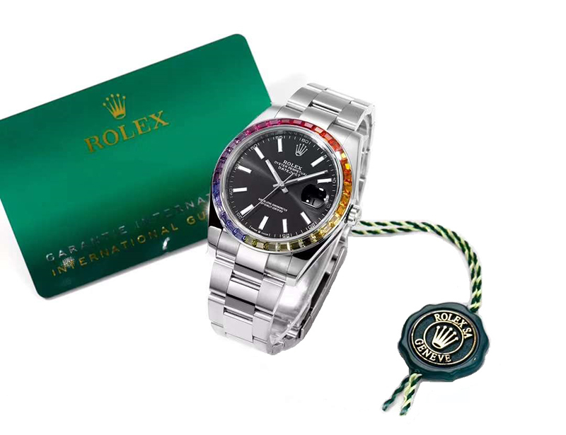 [스페셜오더][Jvs Factory]ROLEX-롤렉스 데이-데이트 레인보우 사파이어 베젤 904L 스틸 블랙 다이얼 워치 41mm