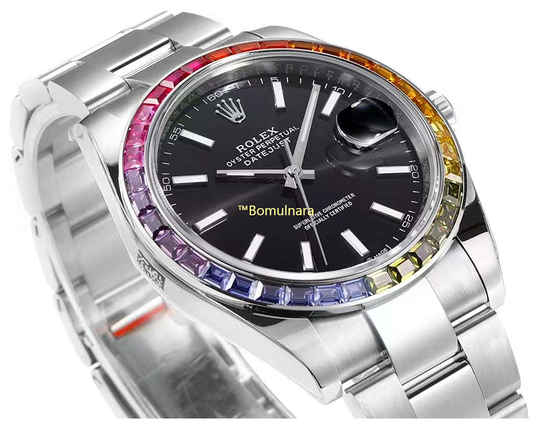 [스페셜오더][Jvs Factory]ROLEX-롤렉스 데이-데이트 레인보우 사파이어 베젤 904L 스틸 로마숫자 인덱스 시계 41mm