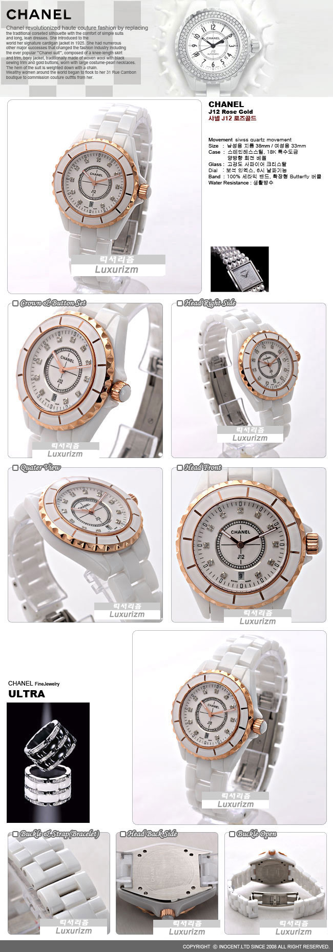 샤넬 j12 로즈 골드 다이아 인덱스 화이트 (남녀공용)