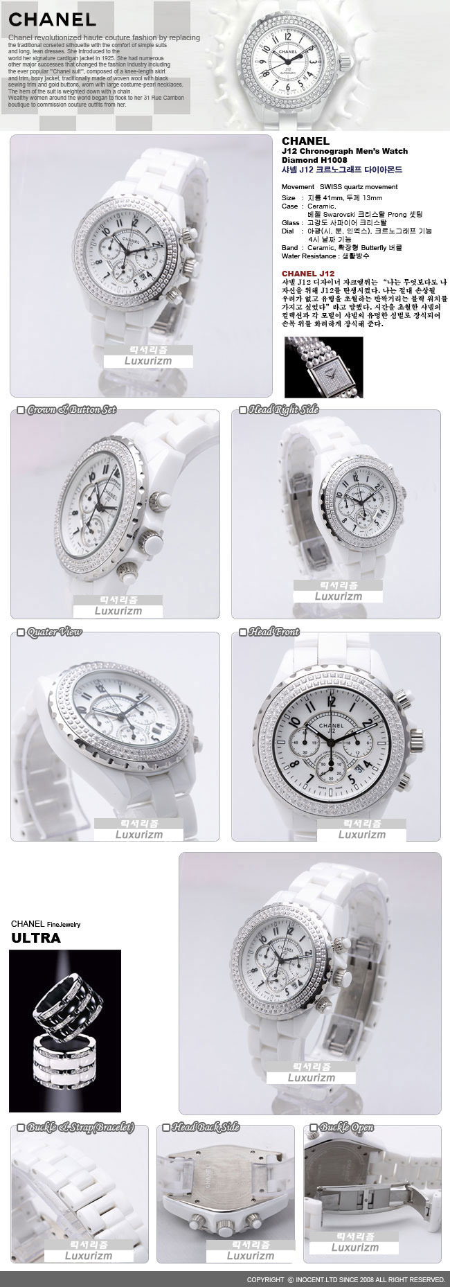 샤넬 J12 크로노그래프 Mans 다이아몬드 화이트