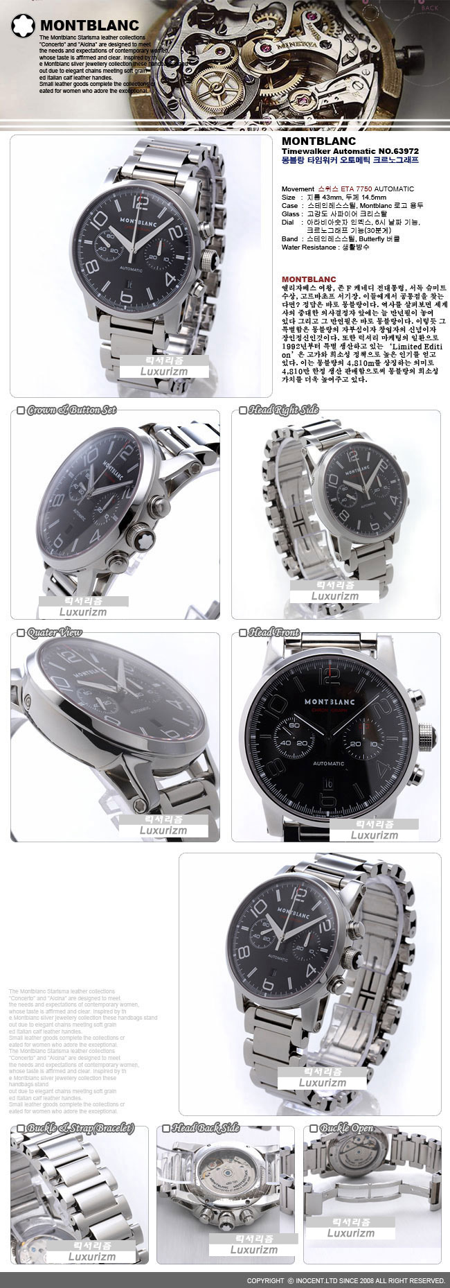 MONTBLANC 타임워커 오토메틱 크르노그래프 SWISS ETA7750 블랙