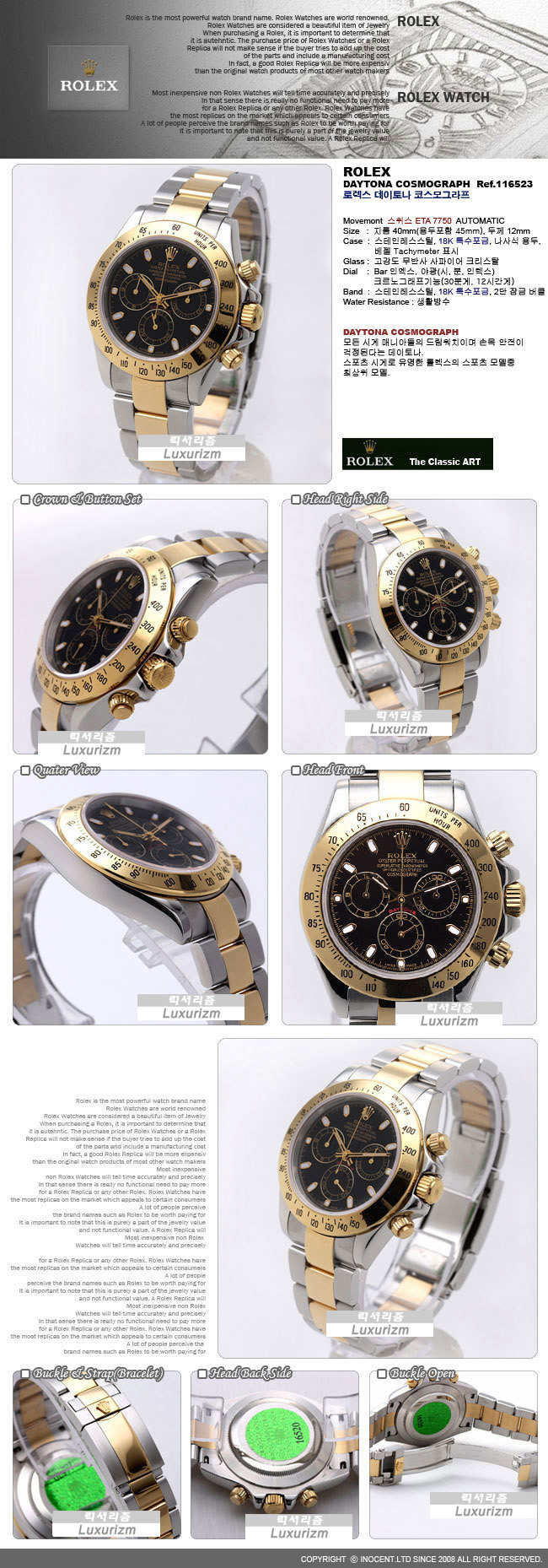 로렉스 데이토나 코스모그라프 Ref.116523 SWISS