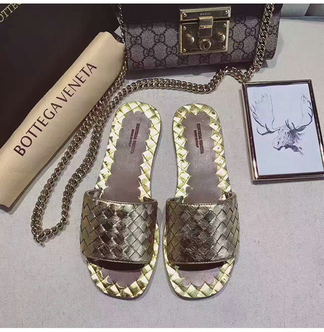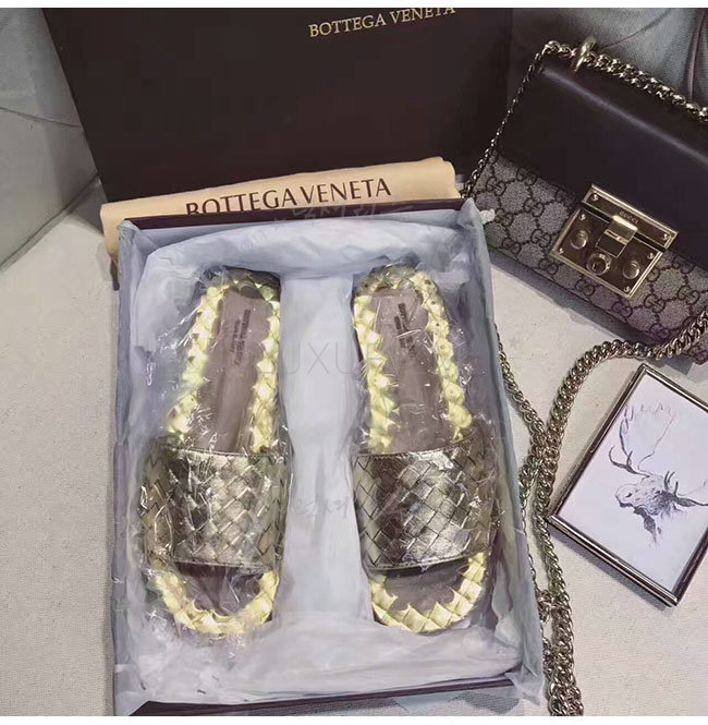 BOTTEGAVENETA-407413 보테가 베네타 라이트 골드 인트레치아토 카프 라벨로 샌들 여성용