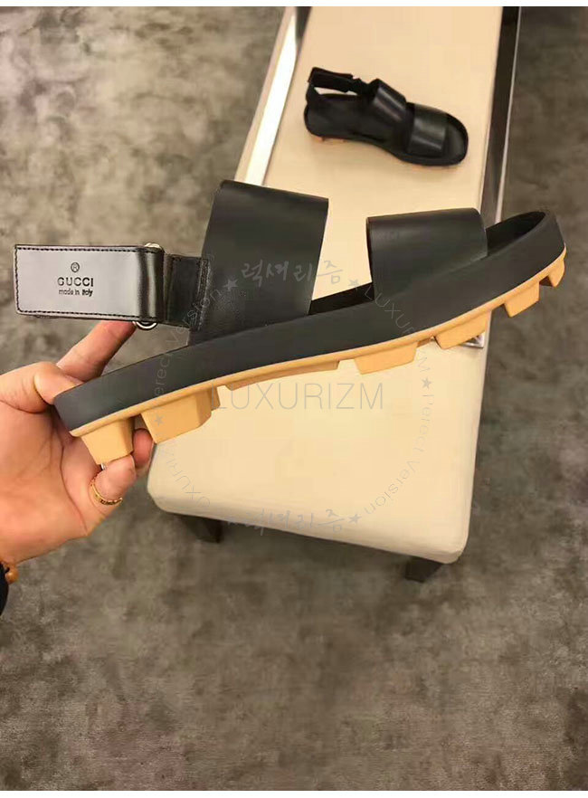 GUCCI-428582 1000 구찌 블랙 가죽 샌들 남성용