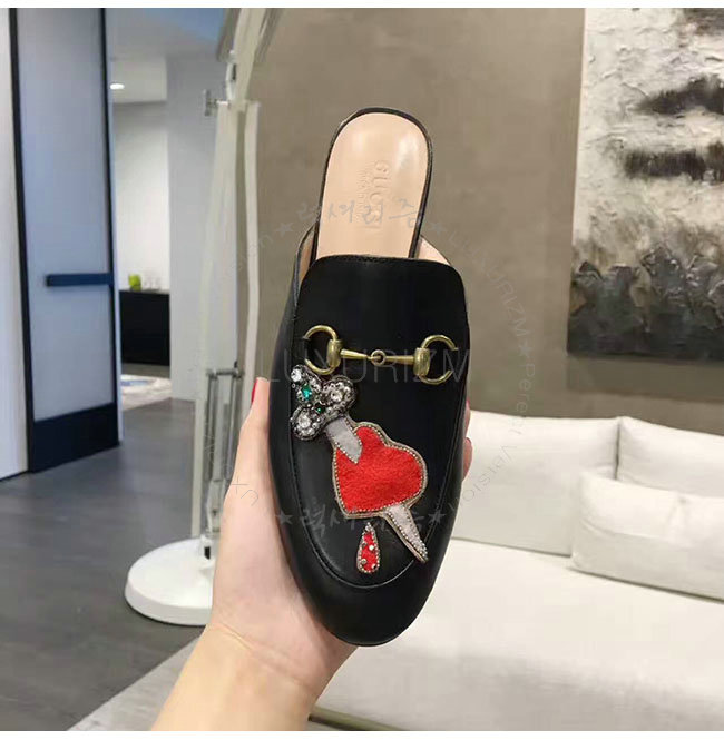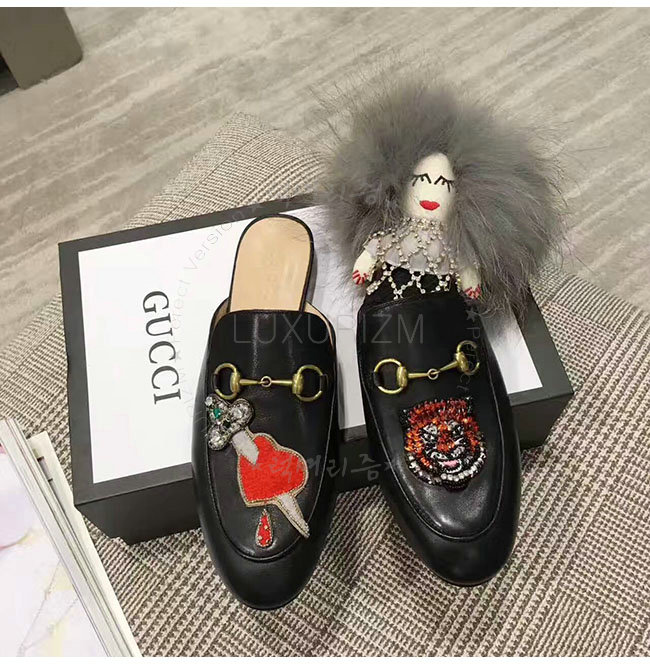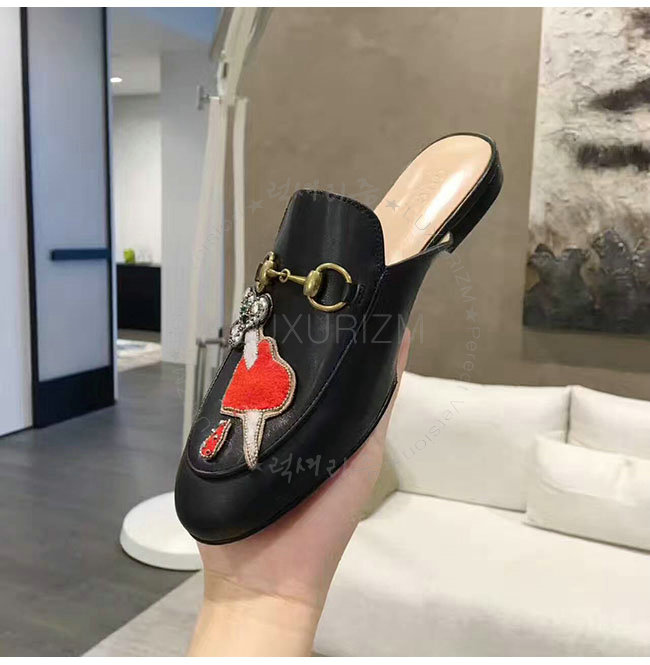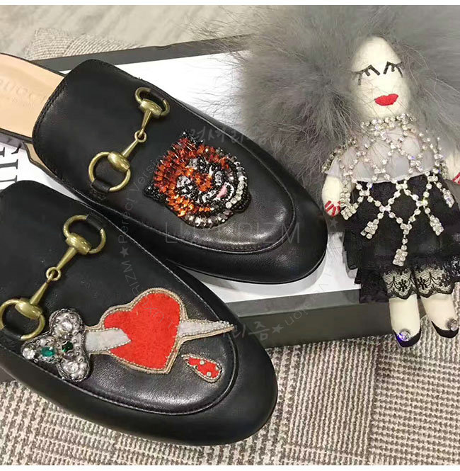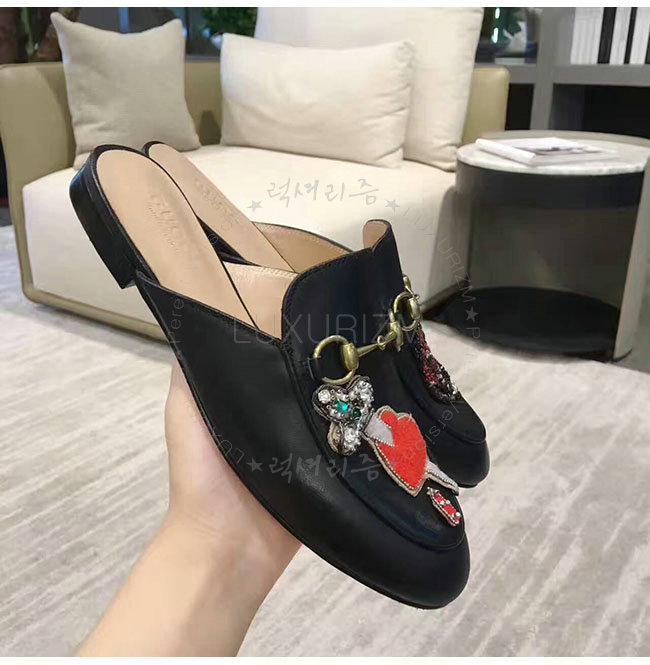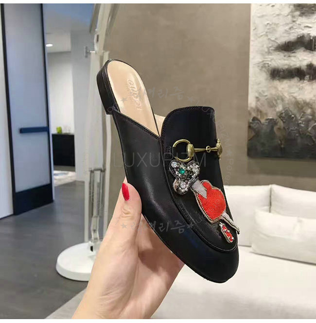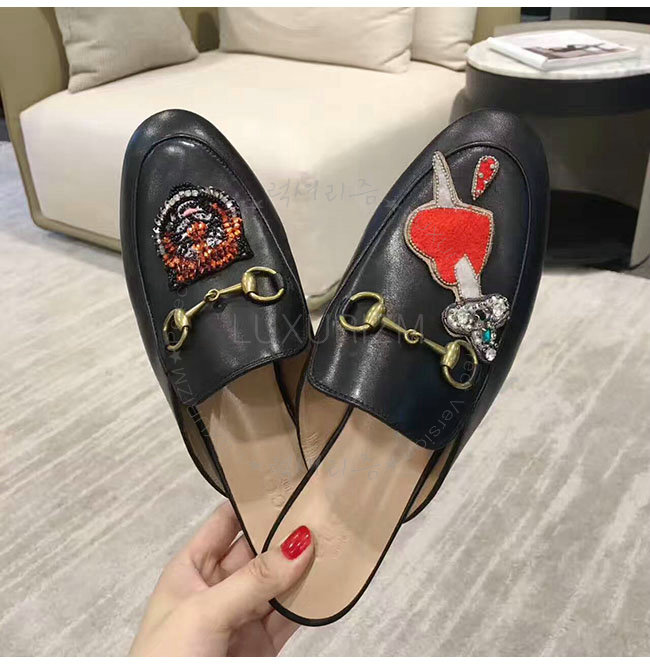 GUCCI-463475 1000 구찌 아플리케 프린스턴 블랙 슬리퍼 여성용