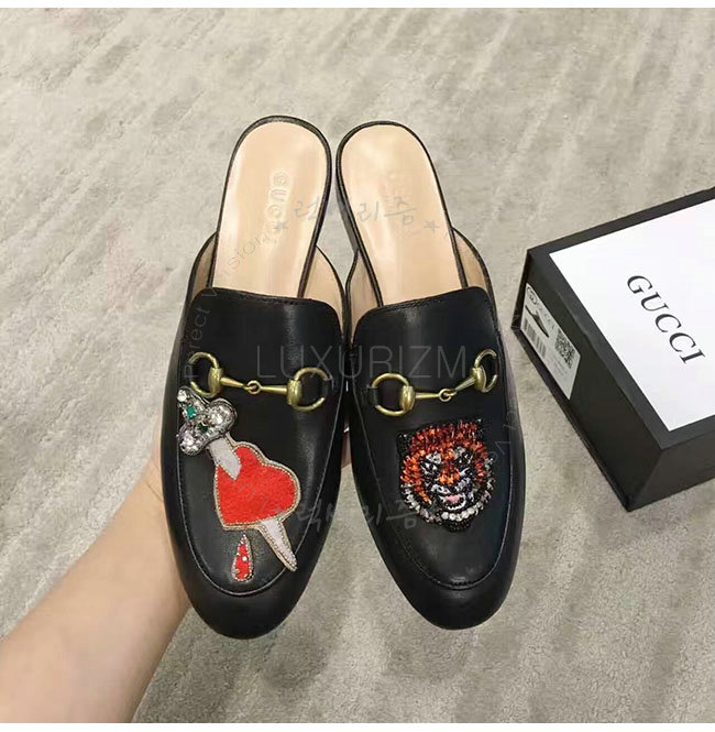 GUCCI-449267 1000 구찌 자수 블랙 프린스턴 펠리 슬리퍼 여성용