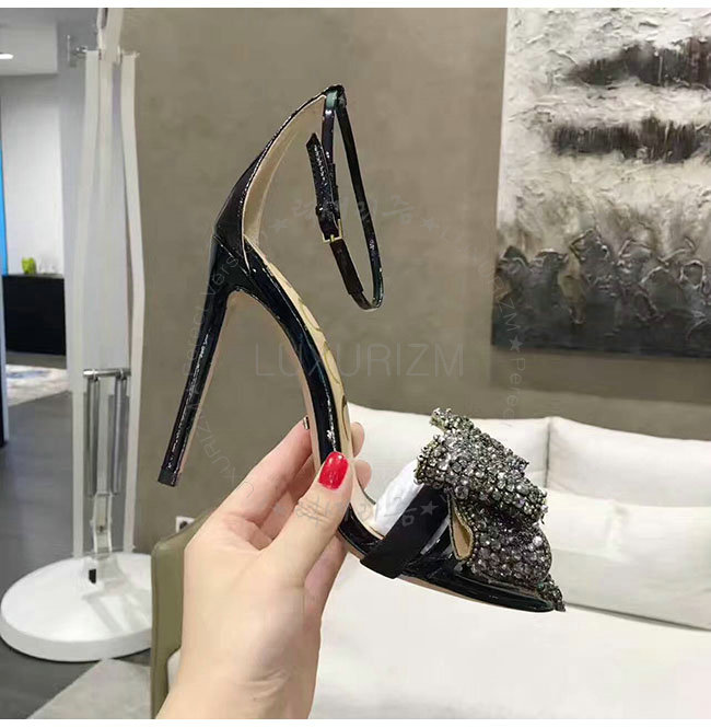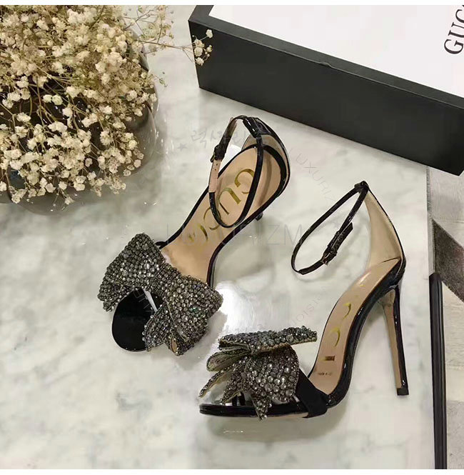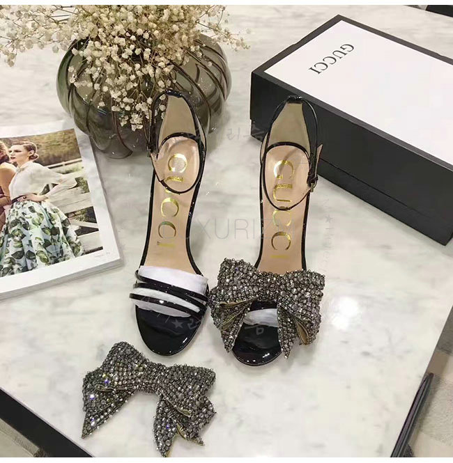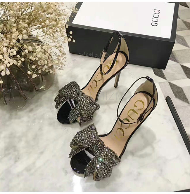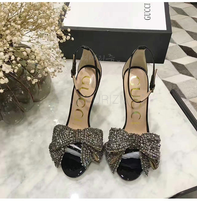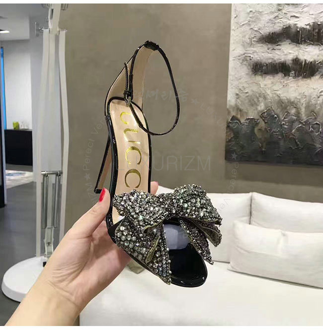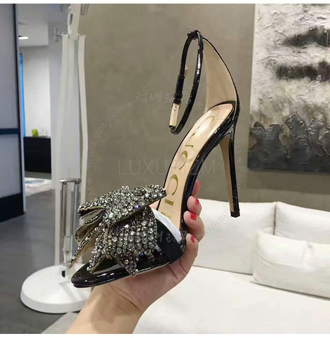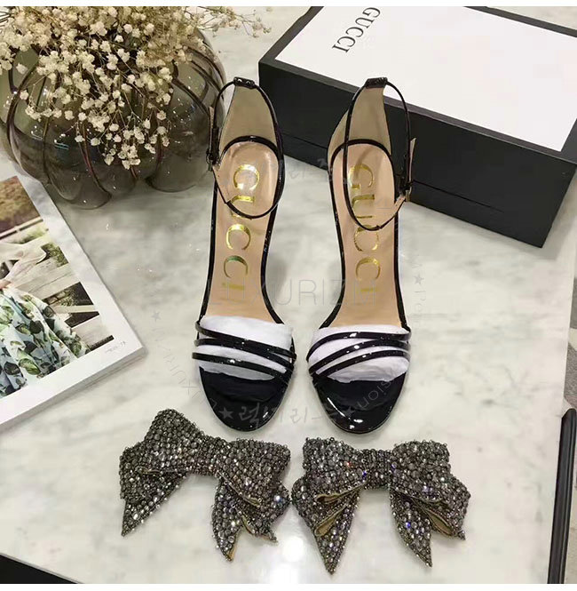 GUCCI-465995 1000 구찌 탈착 가능한 크리스탈 새틴 패턴 블랙 가죽 샌들 여성용