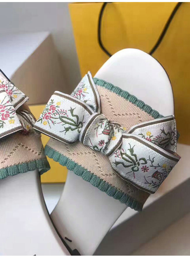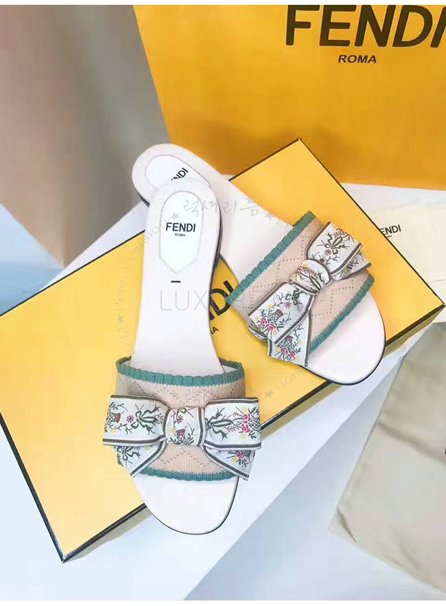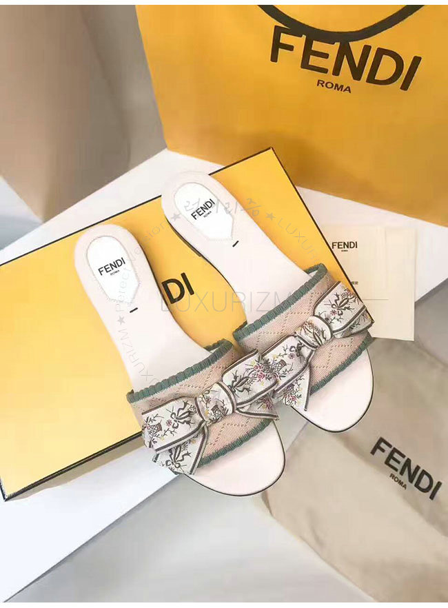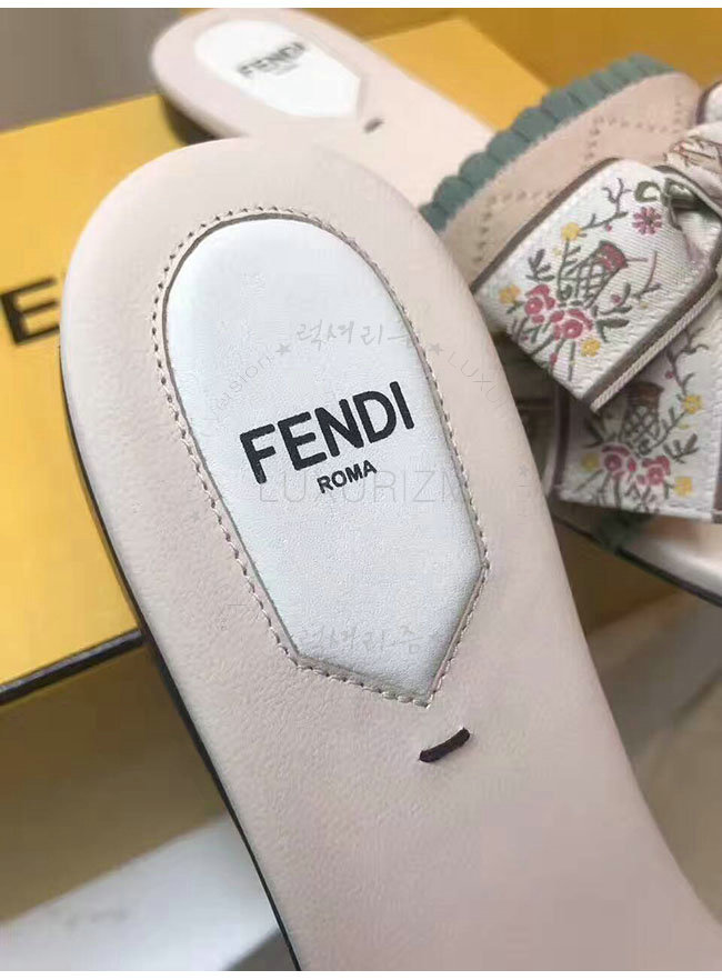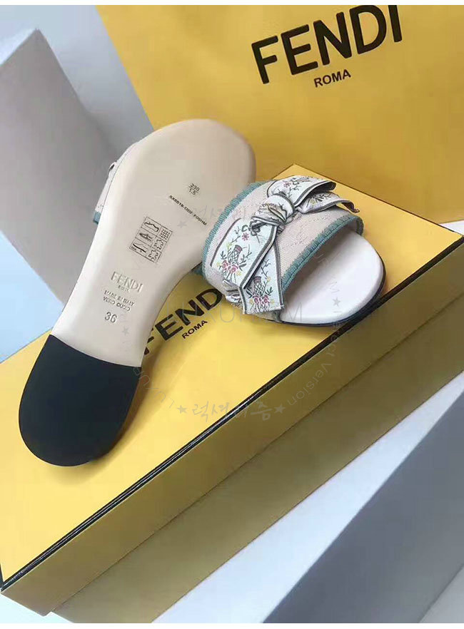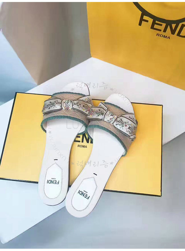 FENDI-8X6518 펜디 그린 베이지 패브릭 플랫 샌들 여성용