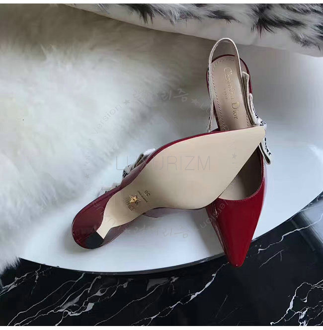 DIOR-C200 디올 리본&레드 페이턴트 가죽 슬링 백 여성용