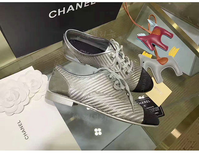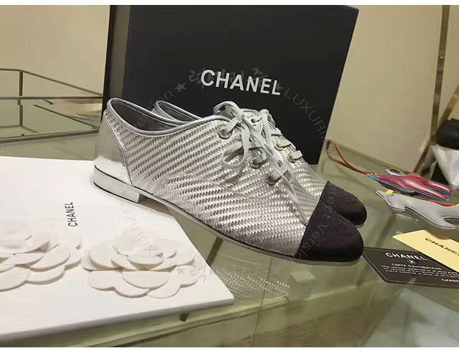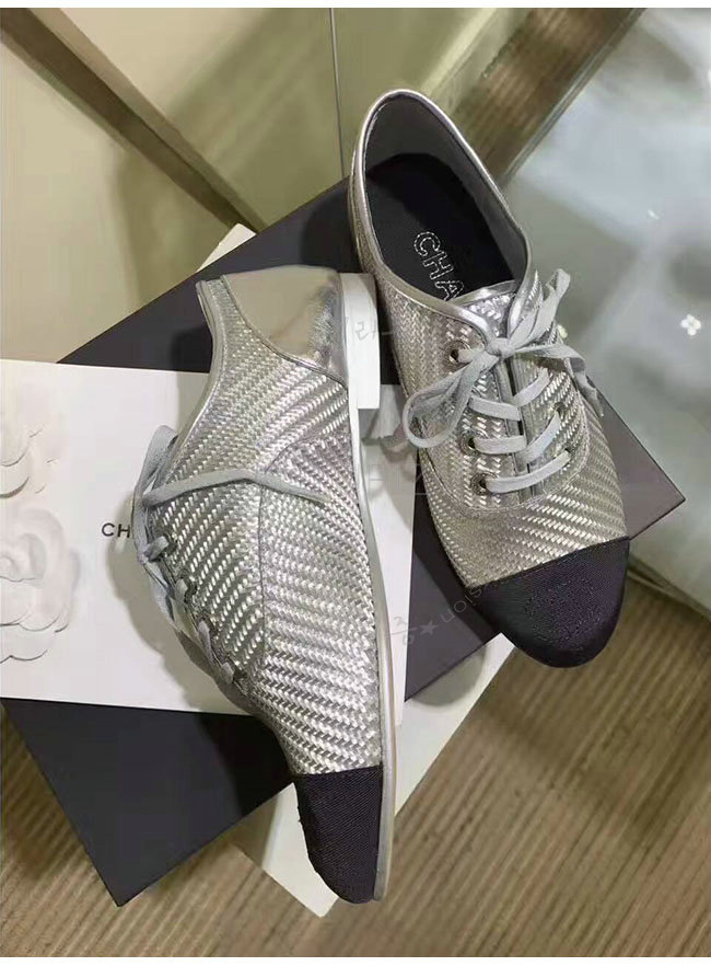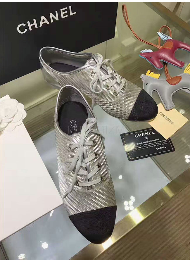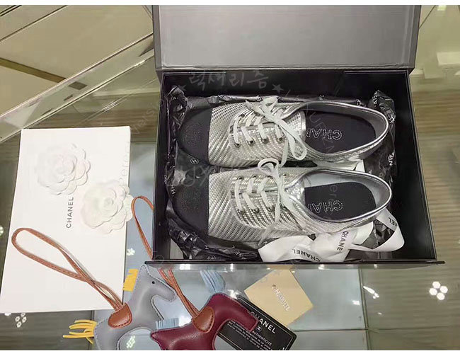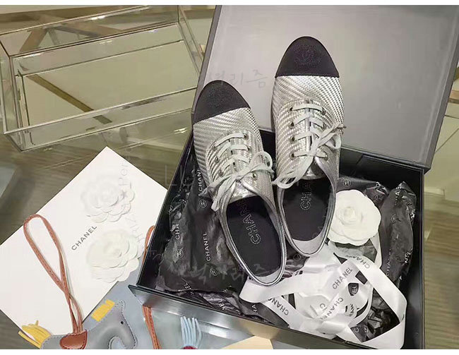 CHANEL-G328431 샤넬 PVC 그로그랭 실버 블랙 레이스업 여성용