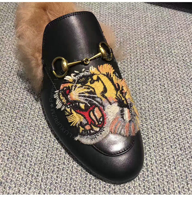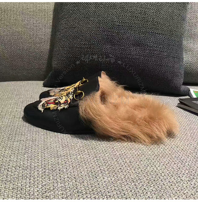 #구찌레플리카쇼핑몰 구찌여성용신발전문 by 럭셔리즘 GUCCI-462723 1063 구찌 프린스턴 타이거 자수 블랙 가죽 슬리퍼 여성용