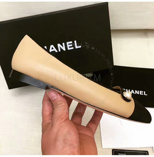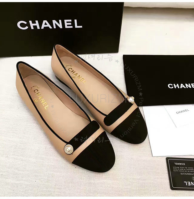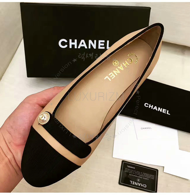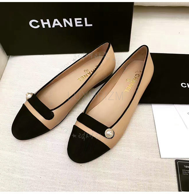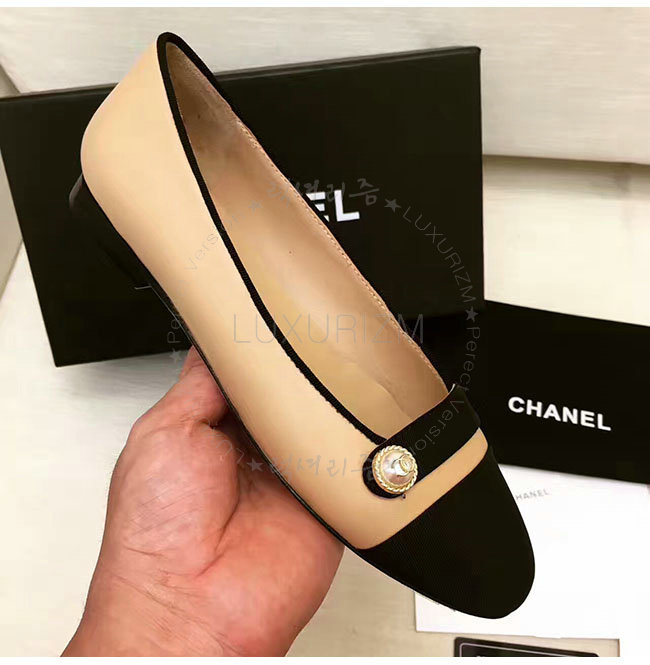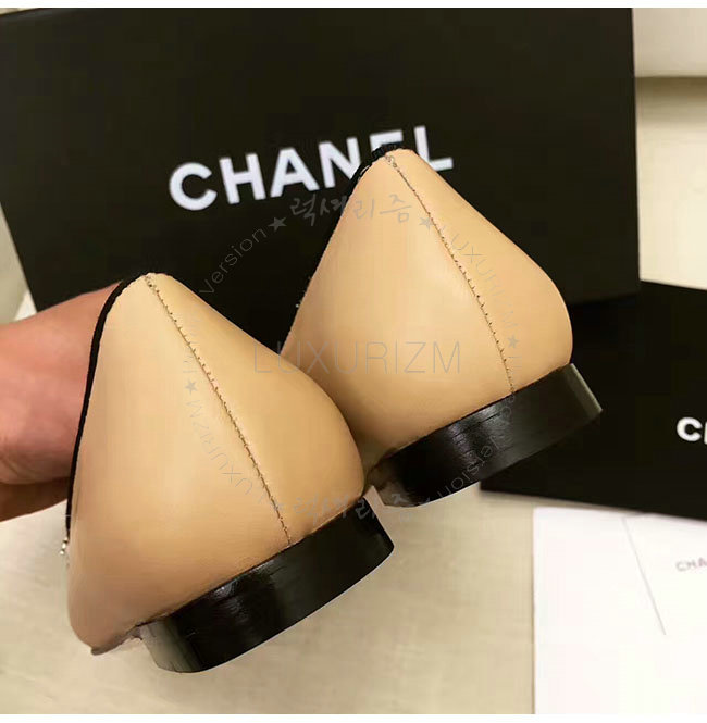 CHANEL-G32922 샤넬 램스킨 그로그랭 베이지 플랫 여성용