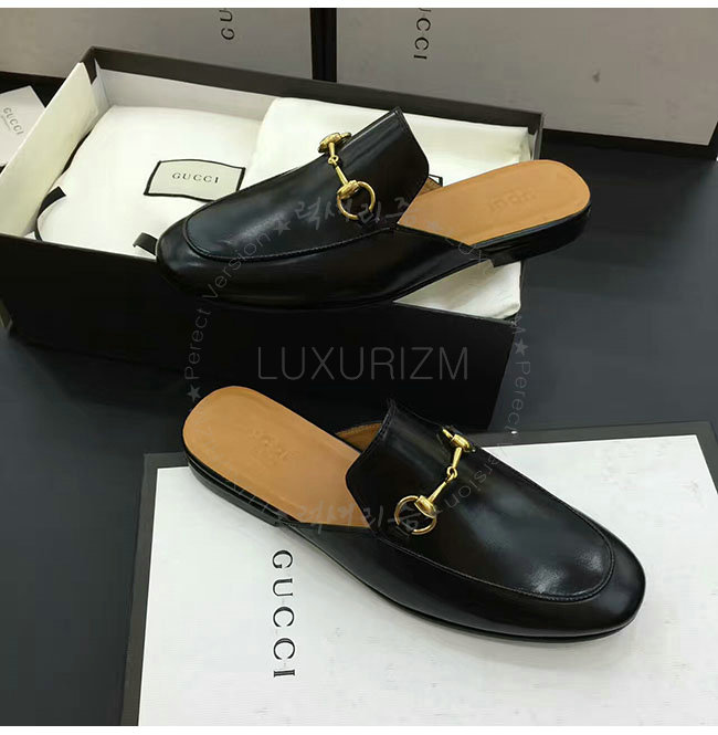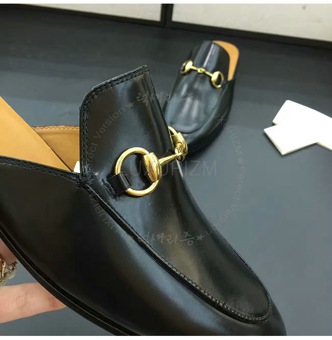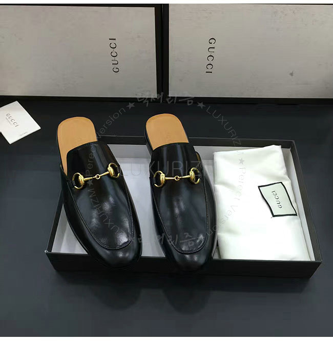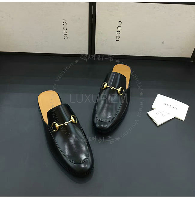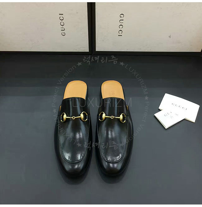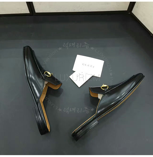 [스페셜오더]GUCCI-426219 1000 구찌 블랙 가죽 홀스빗 슬리퍼 남성용