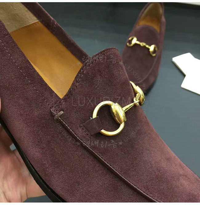 [스페셜오더]GUCCI-407314 2140 구찌 와인 스웨이드 가죽 홀스빗 로퍼 남성용