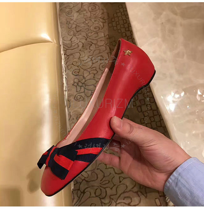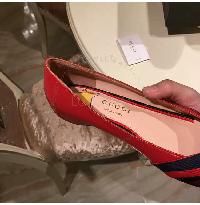 GUCCI-432045 6488구찌 여성용 레드 Web 플랫 슈즈