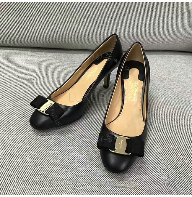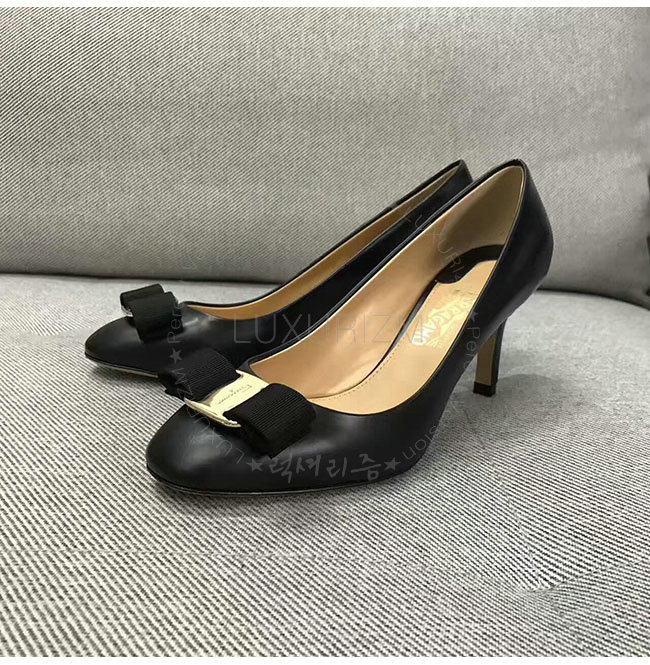 FERRAGAMO-01B788 페라가모 까를라 오나먼트 블랙 펌프스 여성용