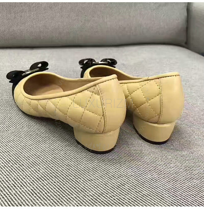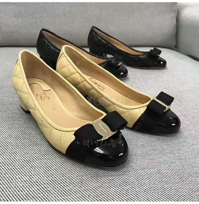 FERRAGAMO-01M832 페라가모 퀼티드 바라 베이지 펌프스 여성용