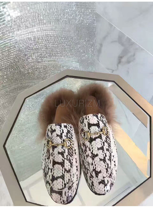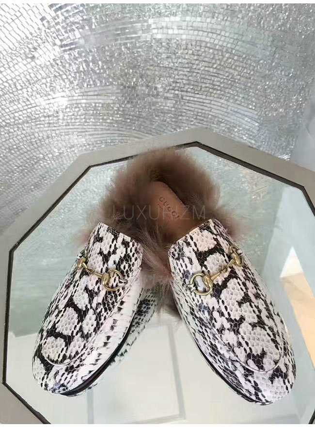 GUCCI-397749 9570 구찌 프린스턴 화이트 스네이크 무늬 슬리퍼 여성용