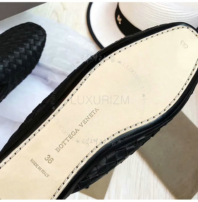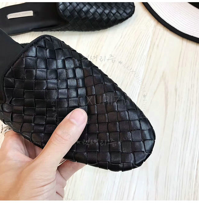 BOTTEGAVENETA-451862 보테가 베네타 블랙 인트레치아토 카프 피안드라 슬리퍼 여성용