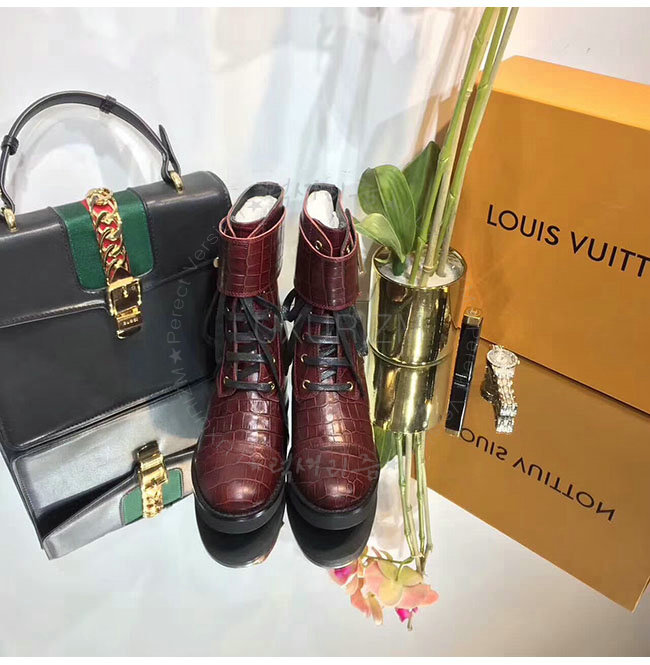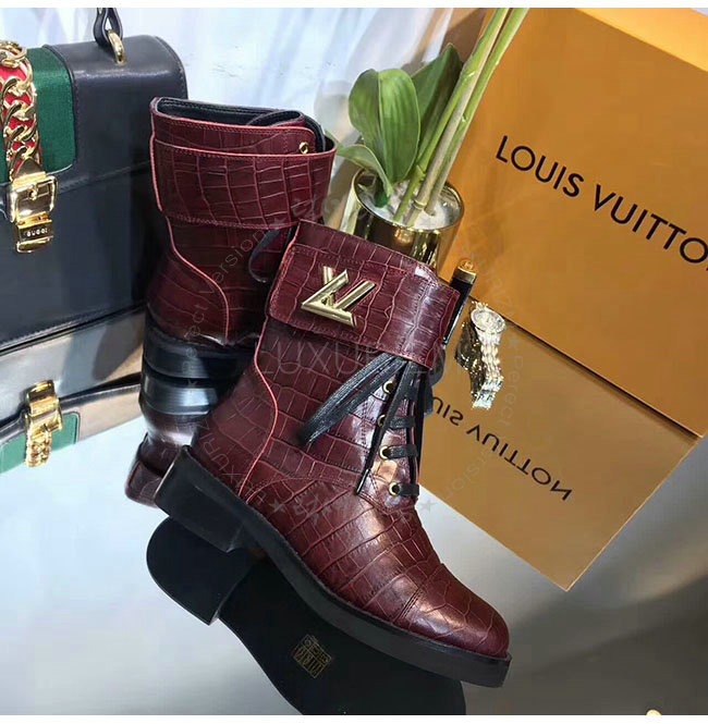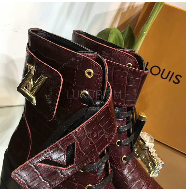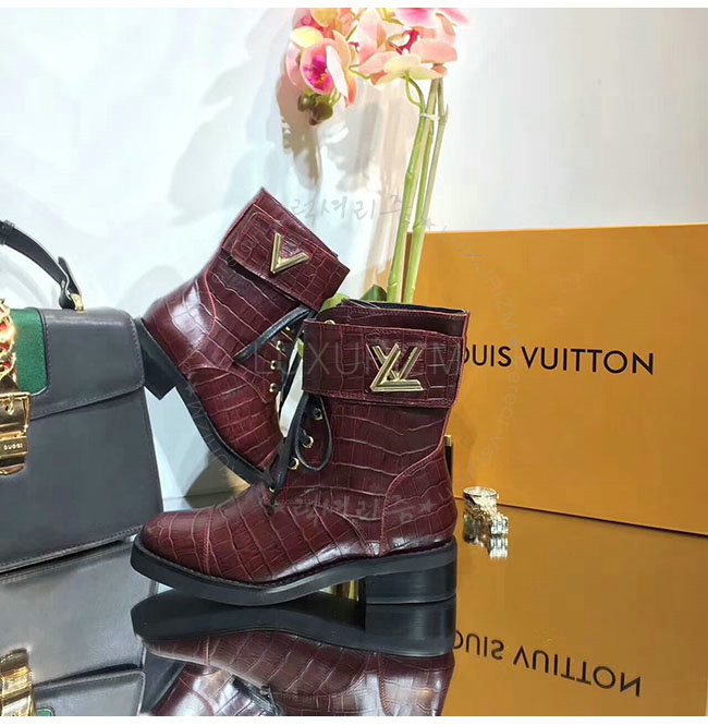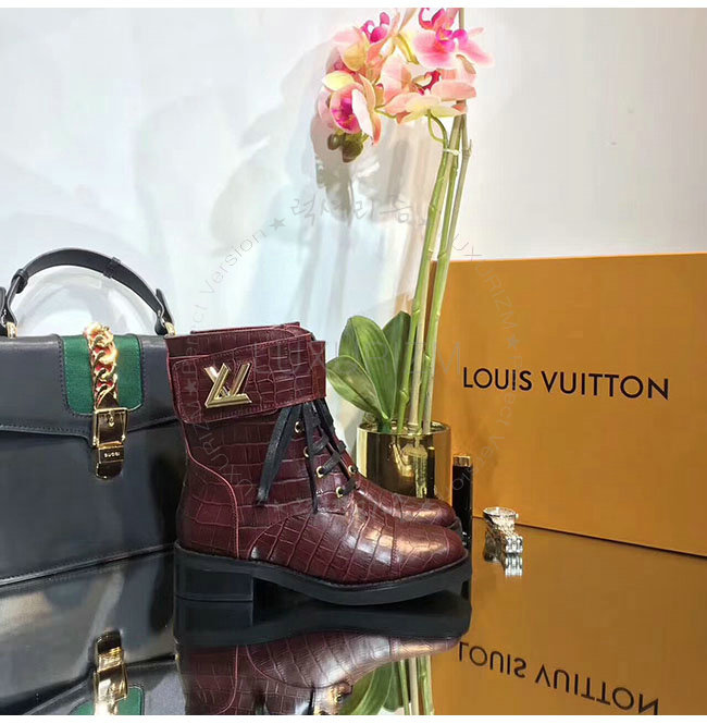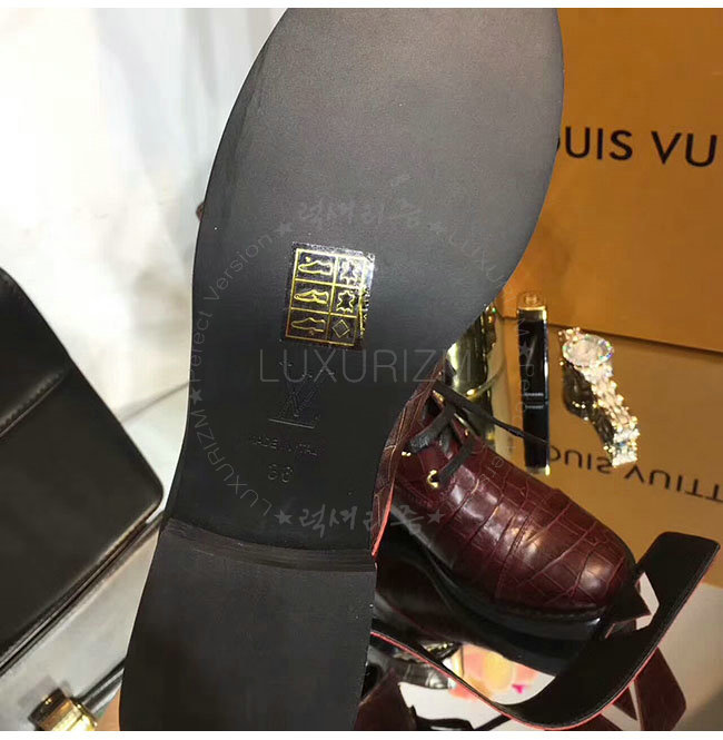 LOUIS VUITTON-1A2XJY 루이비통 악어무늬 레드 가죽 원더랜드 플랫 레인저 여성용