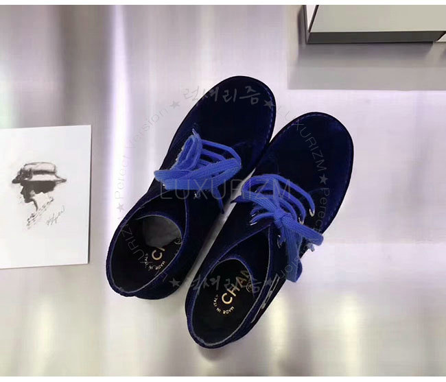 CHANEL-G33127 샤넬 블루 벨벳 쇼트 부츠 여성용