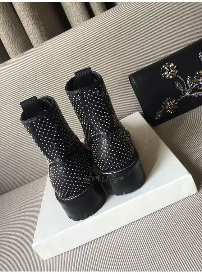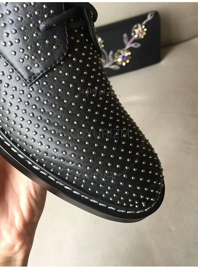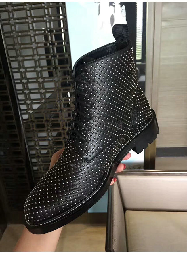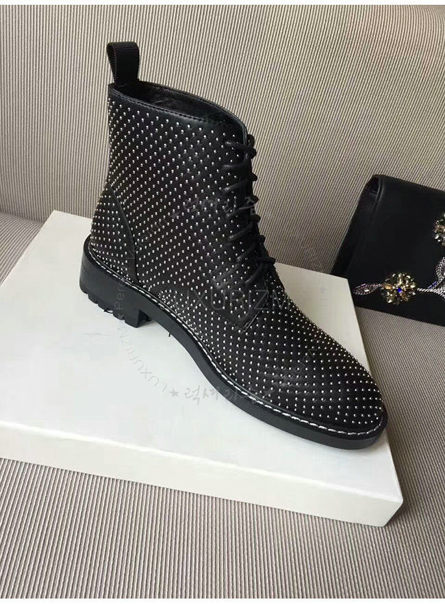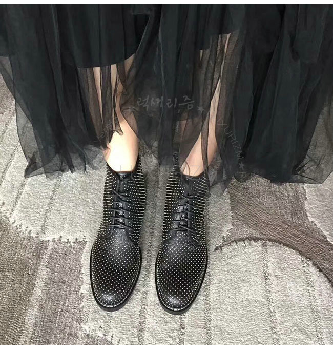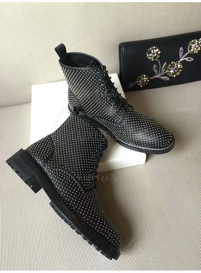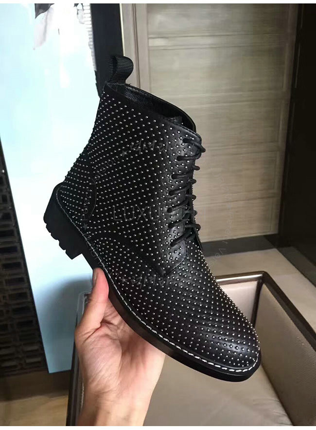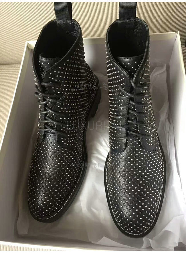 SAINT LAURENT-484855 생로랑 블랙 가죽 윌리엄 스터디드 레이스 업 부츠 여성용