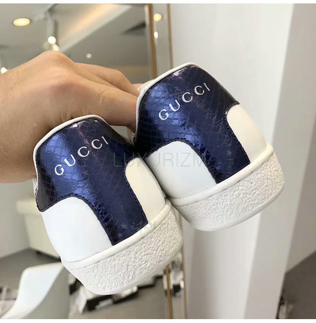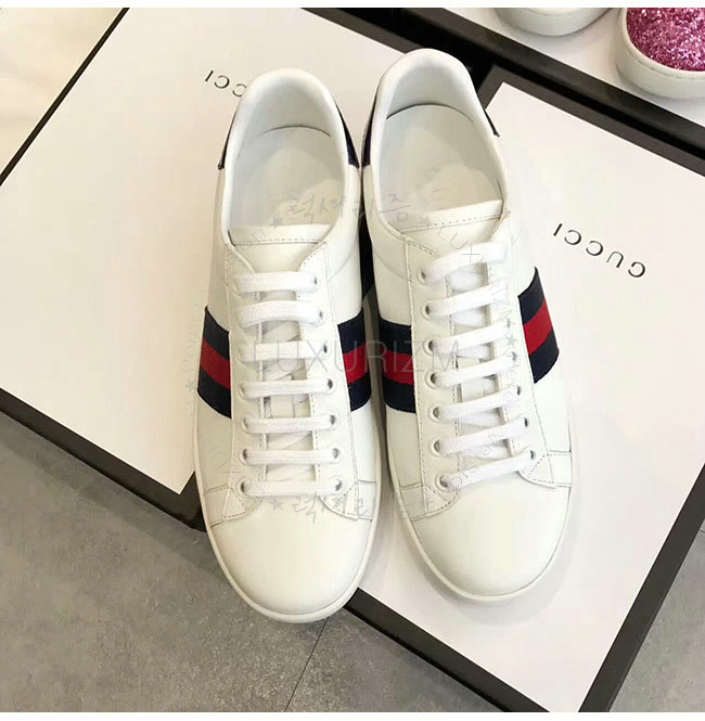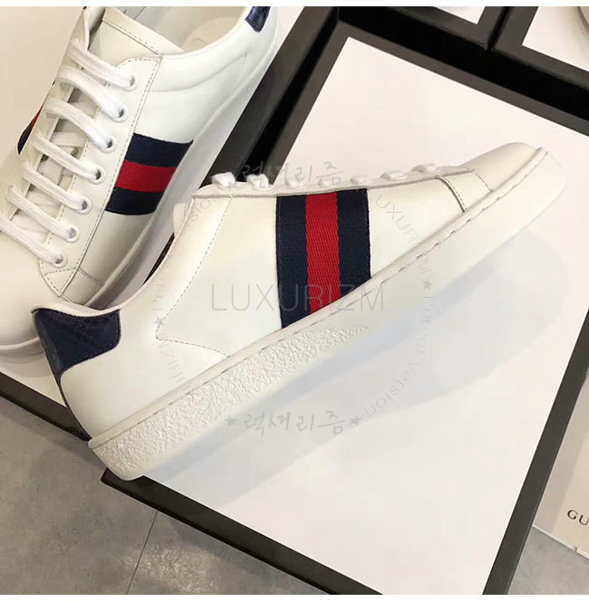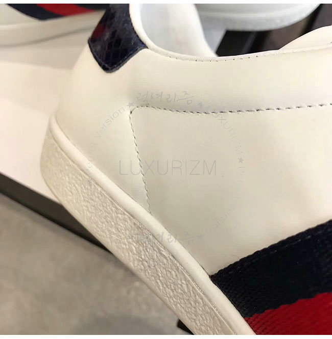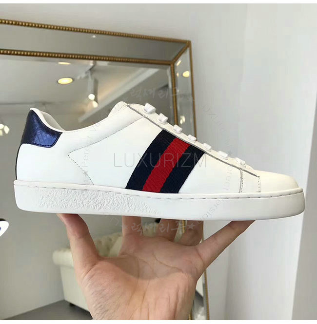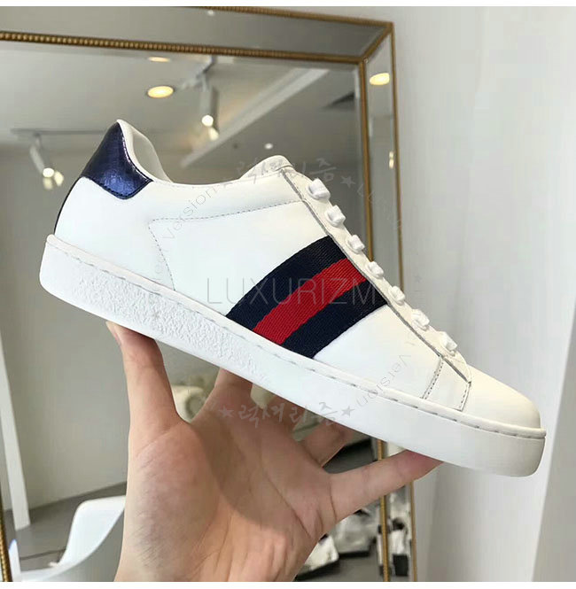 GUCCI-387993 9072 구찌 에이스 화이트 네이비 가죽 로우탑 스니커즈 여성용