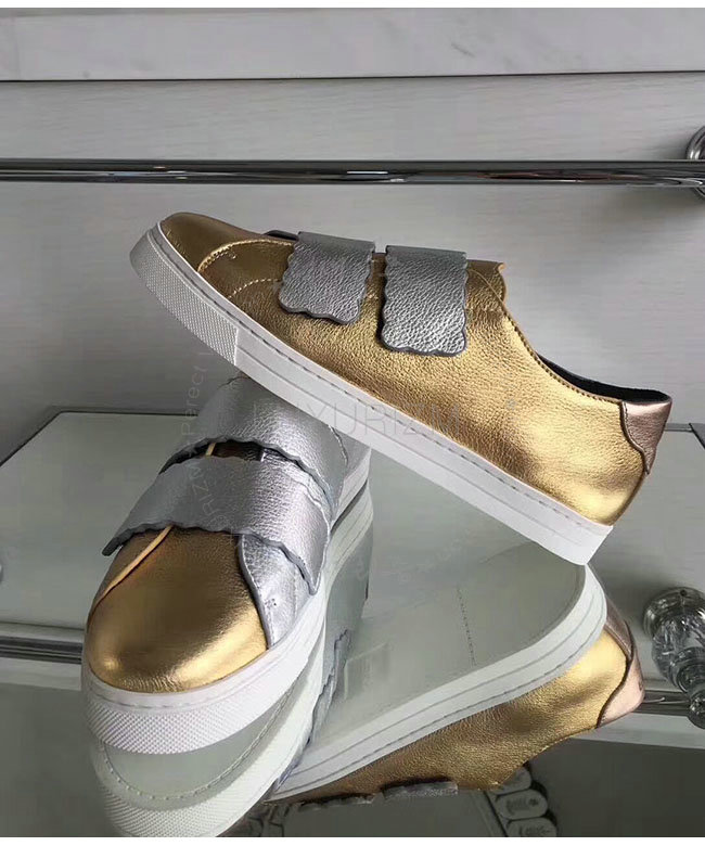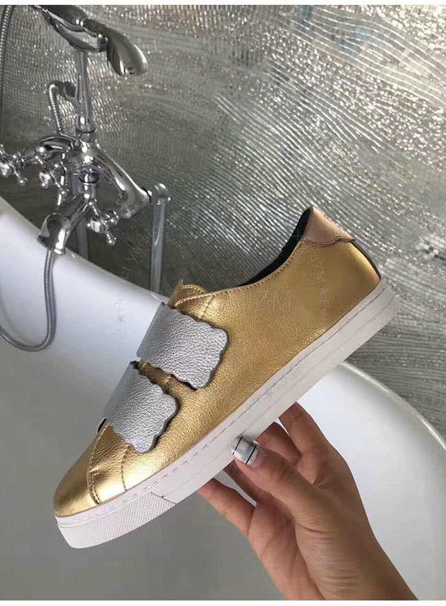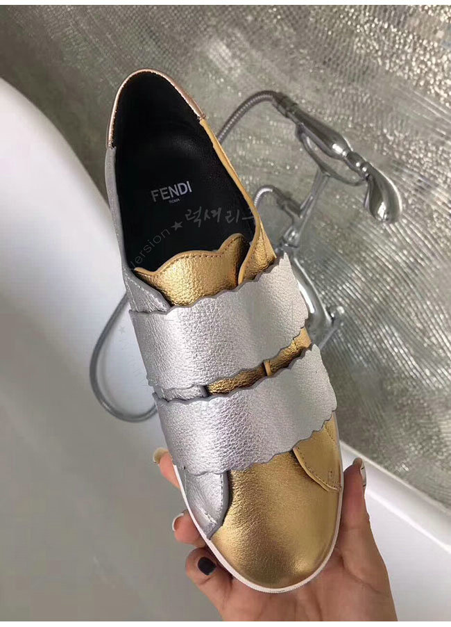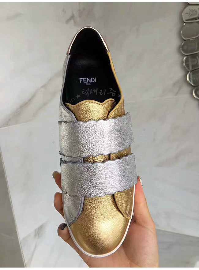 FENDI-8E65439 펜디 골드 래미네이트 가죽 스니커즈 여성용