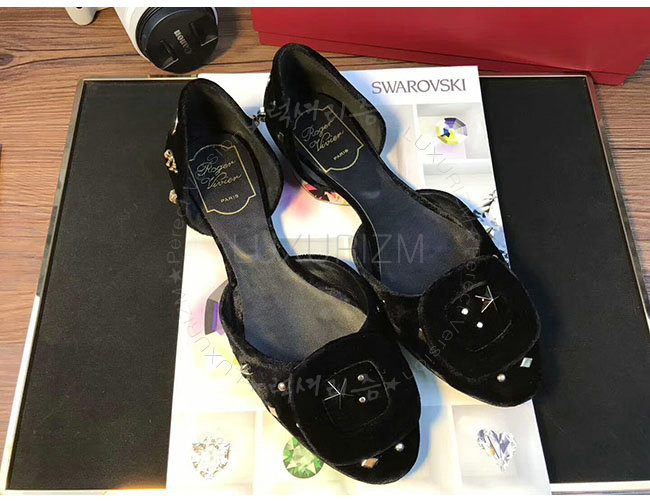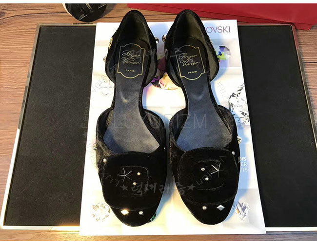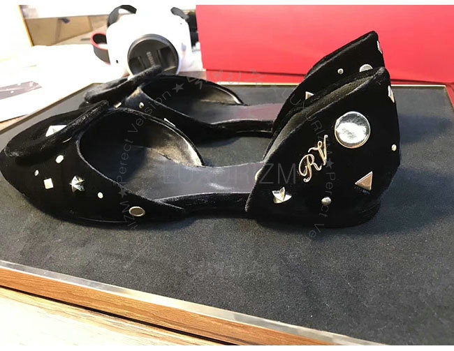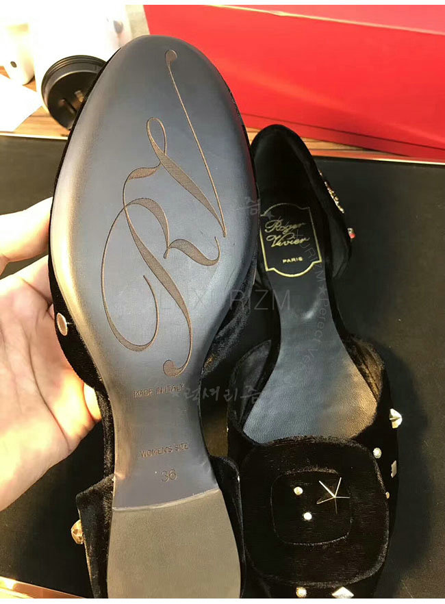 ROGER VIVIER-08819750 로저비비에 아스트르 스터드 블랙 벨벳 발레리나 여성용