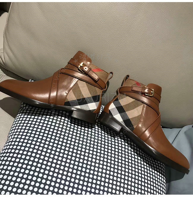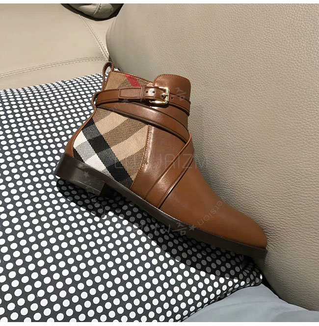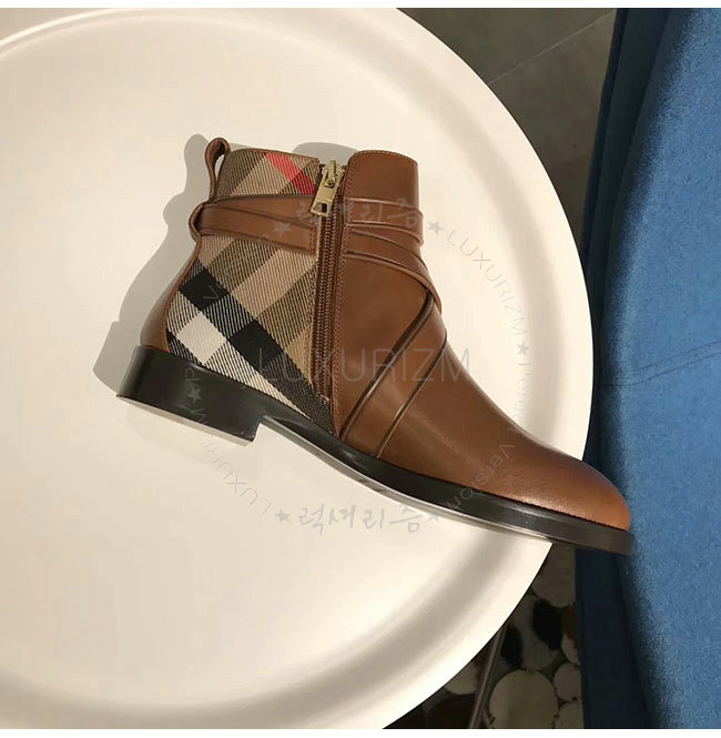 [스페셜오더]BURBERRYI-40364791 버버리 스트랩 디테일 하우스 체크 브라이트 카멜 가죽 앵클 부츠
