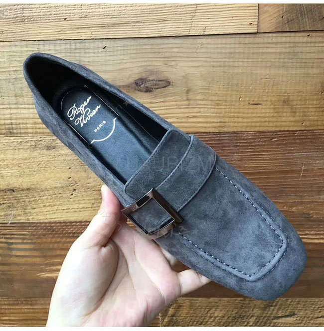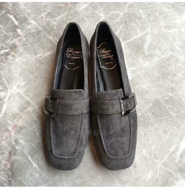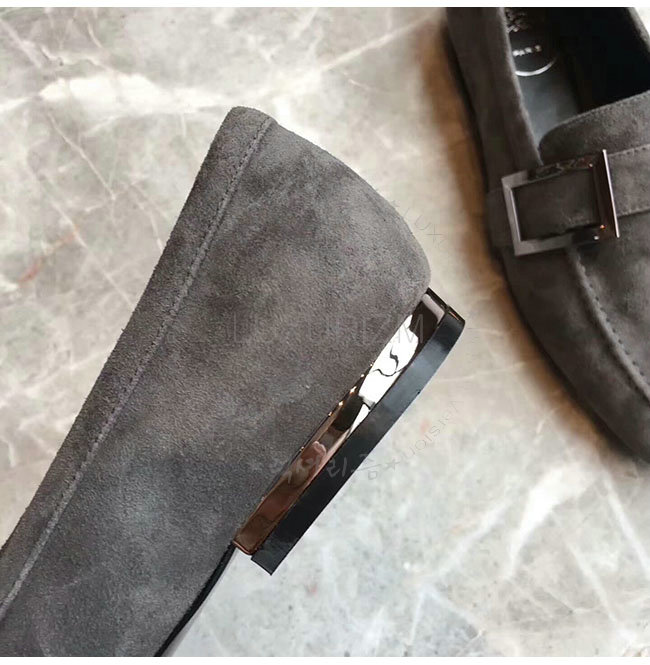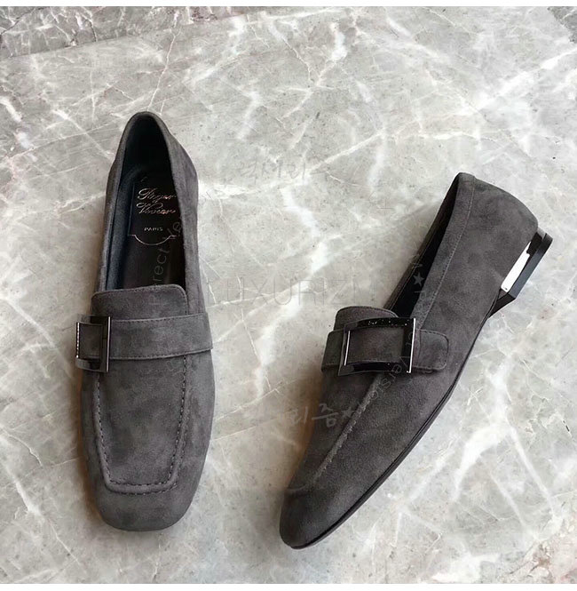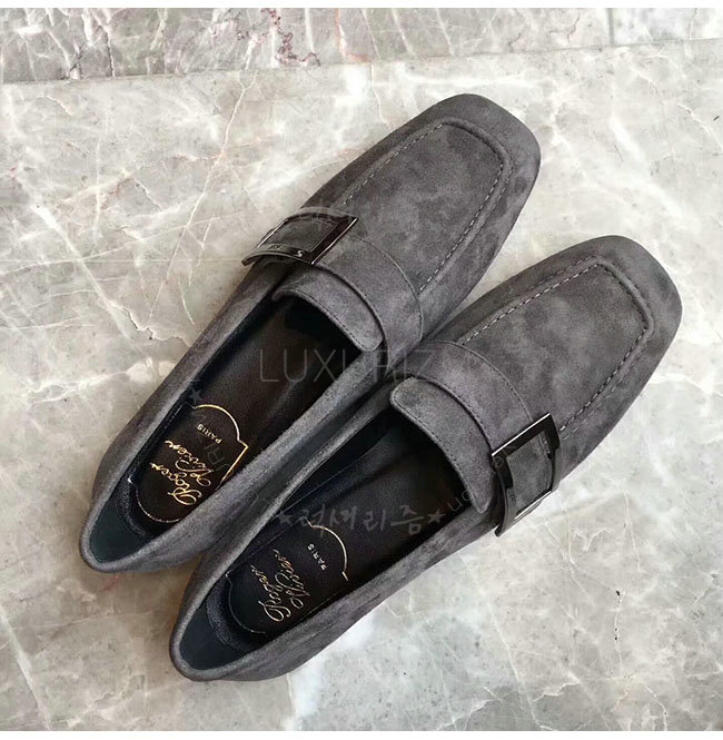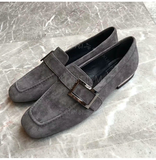 ROGER VIVIER-44918400 로저비비에 그레이 스웨이드 메탈 버클 로퍼 여성용