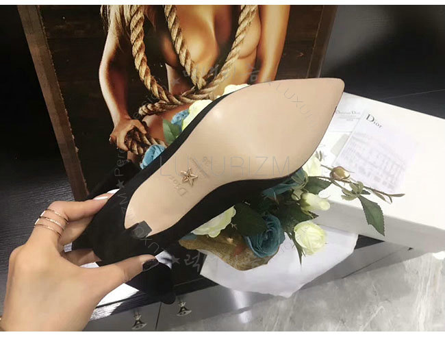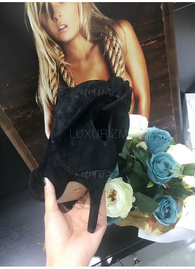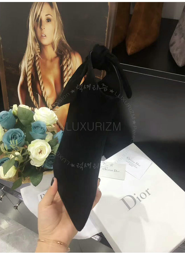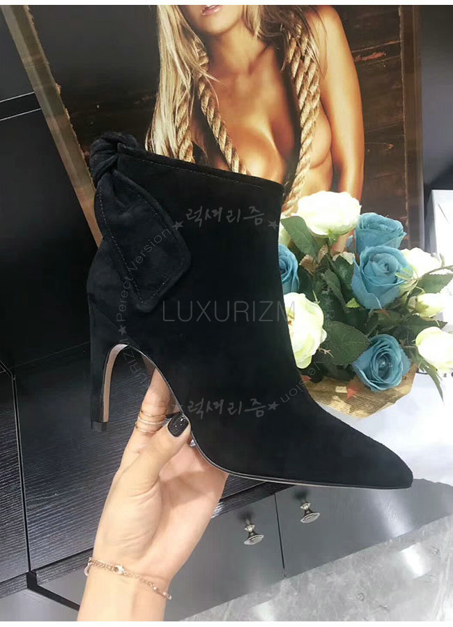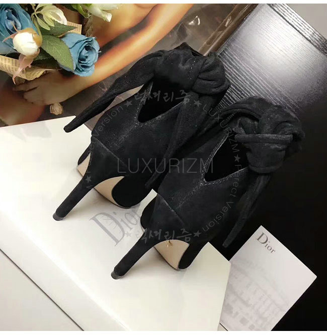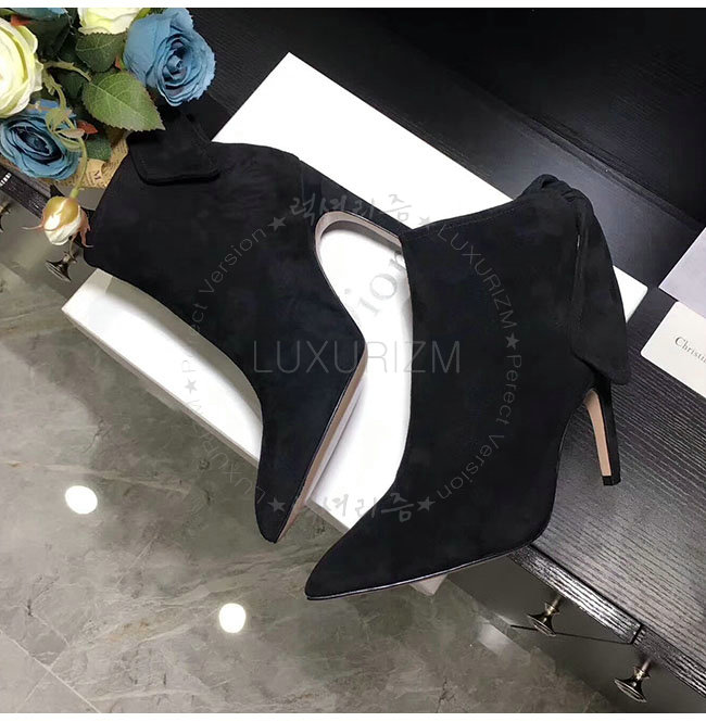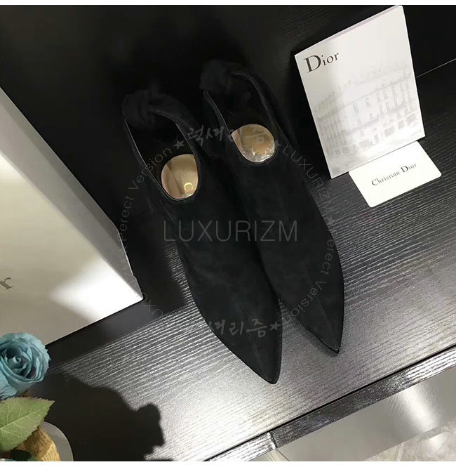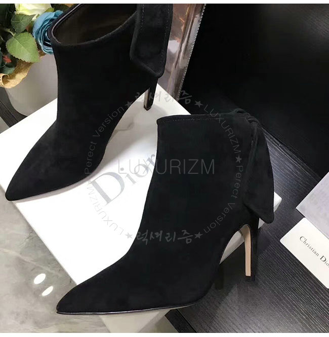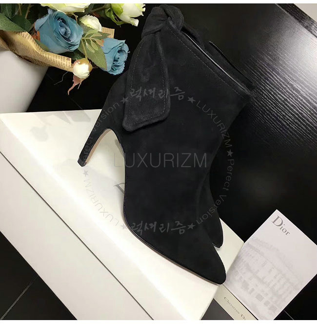 DIOR-KDM184 디올 블랙 스웨이드 송아지 가죽 후면 매듭 앵클 부츠 여성용