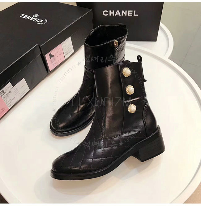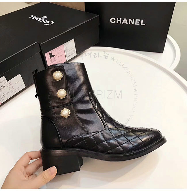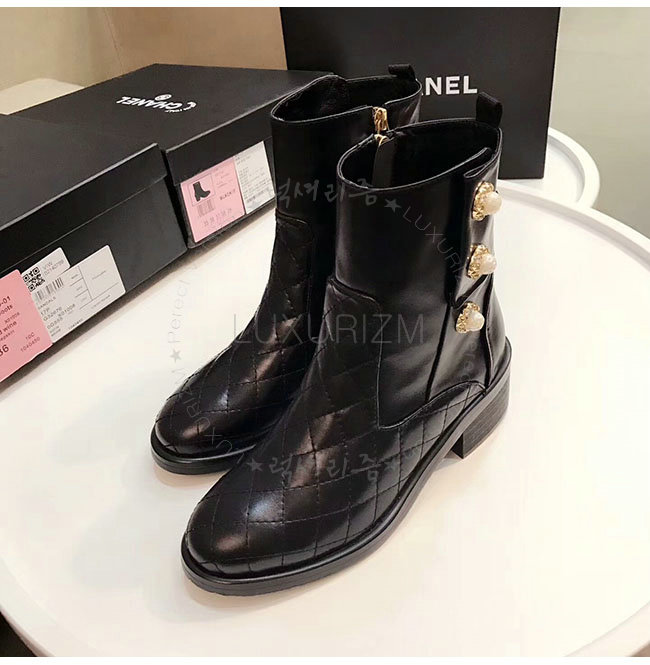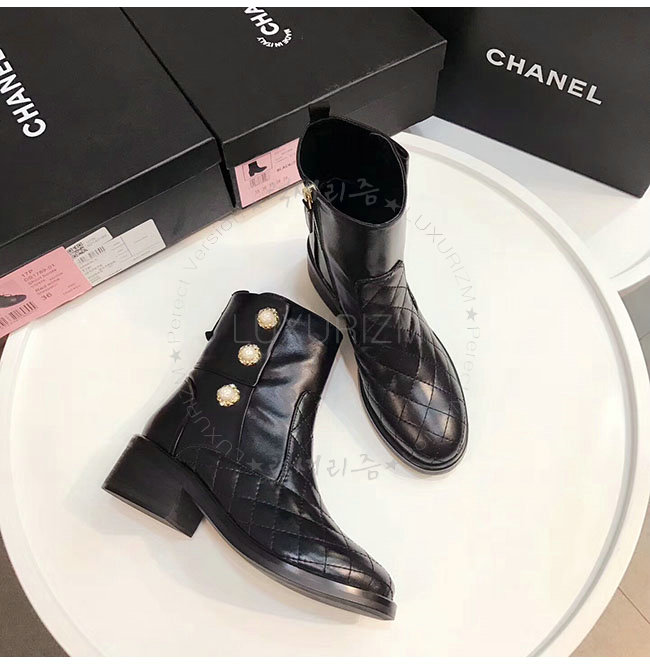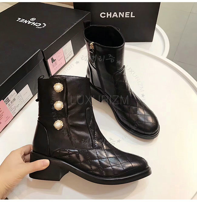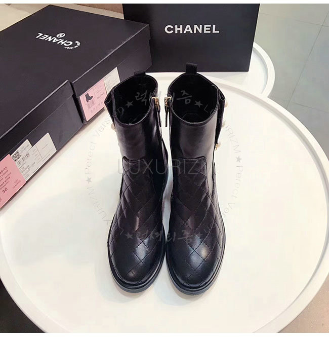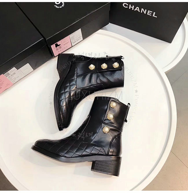 CHANEL-G32970 샤넬 블랙 카프스킨 쇼트 부츠 여성용