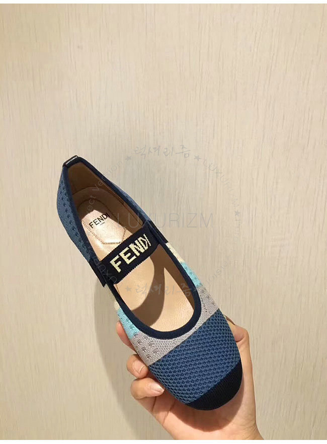 FENDI-8F65329 펜디 블루 스트레치 패브릭 로우 발레리나 여성용
