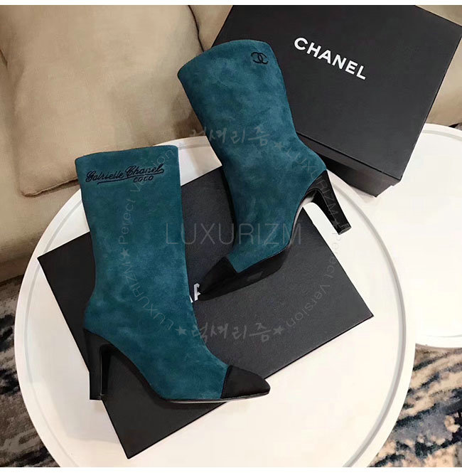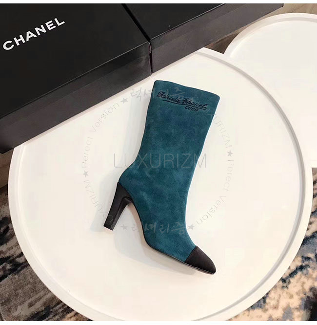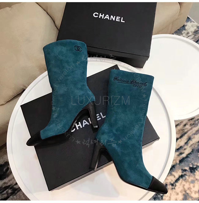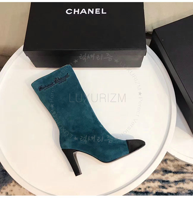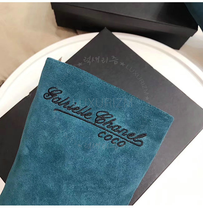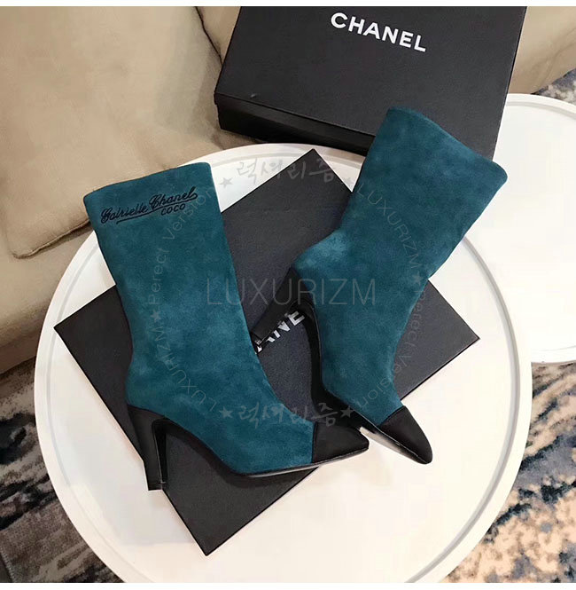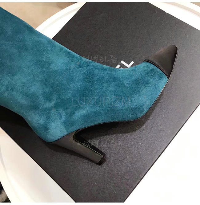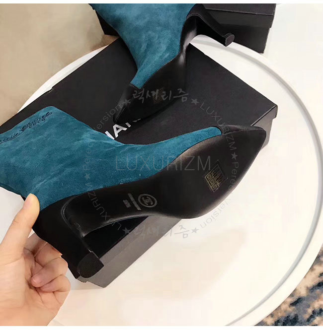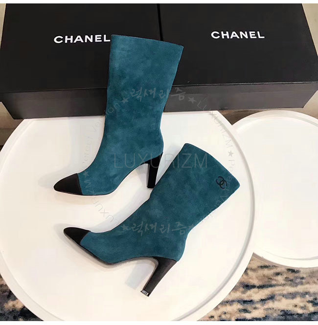 CHANEL-G33119 샤넬 레이크 블루 스웨이드 카프스킨 하이 부츠 여성용