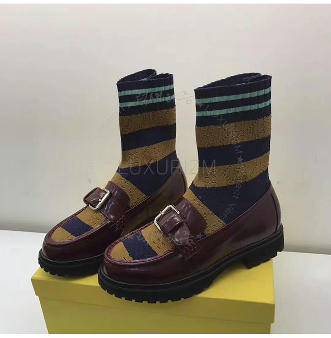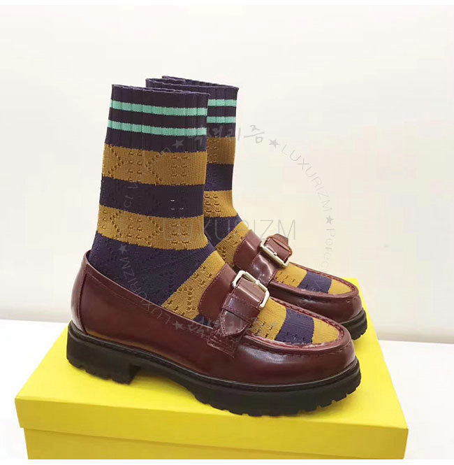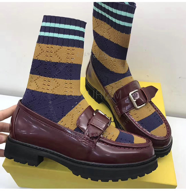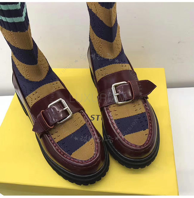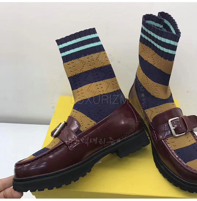 FENDI-8T6594 펜디 버건디 가죽 투타운 니트 로퍼 여성용