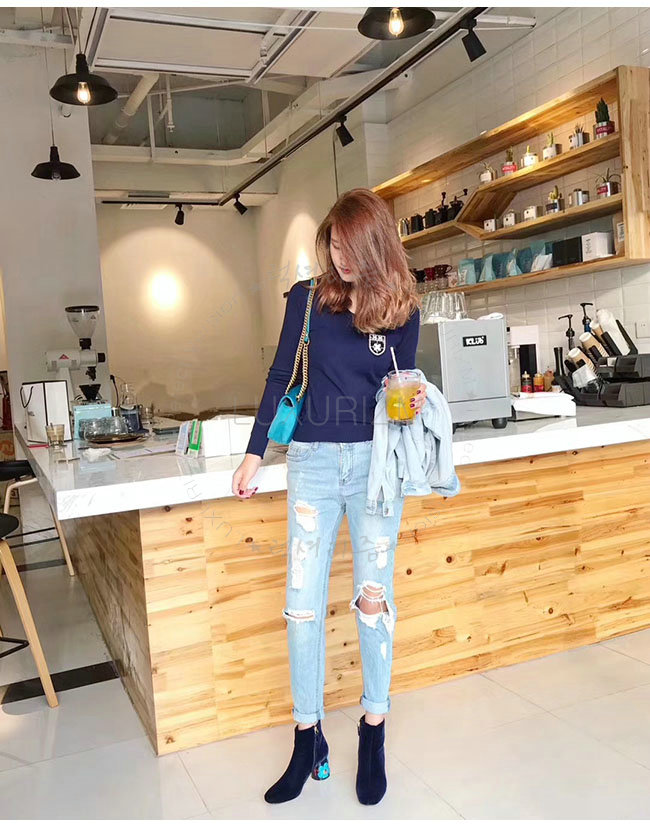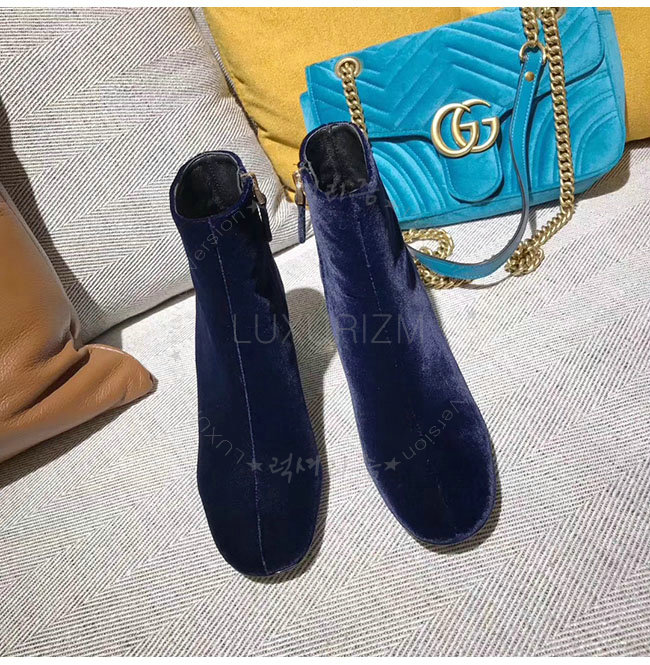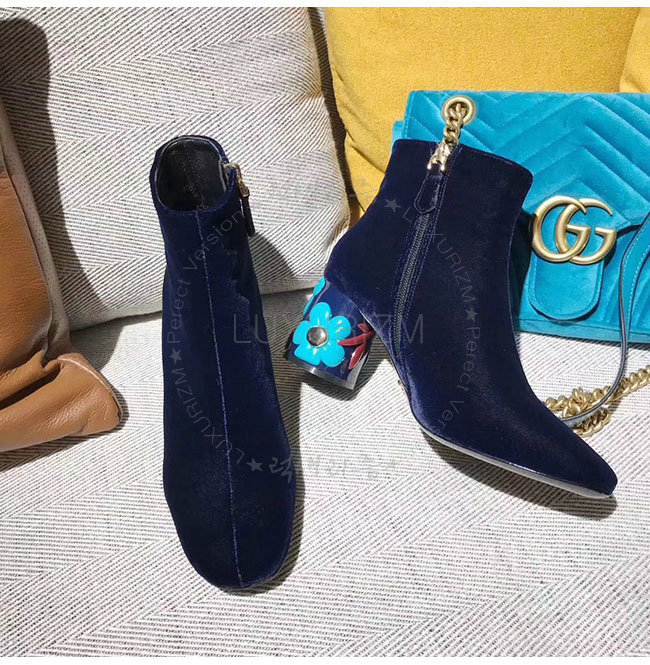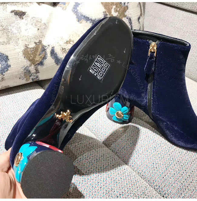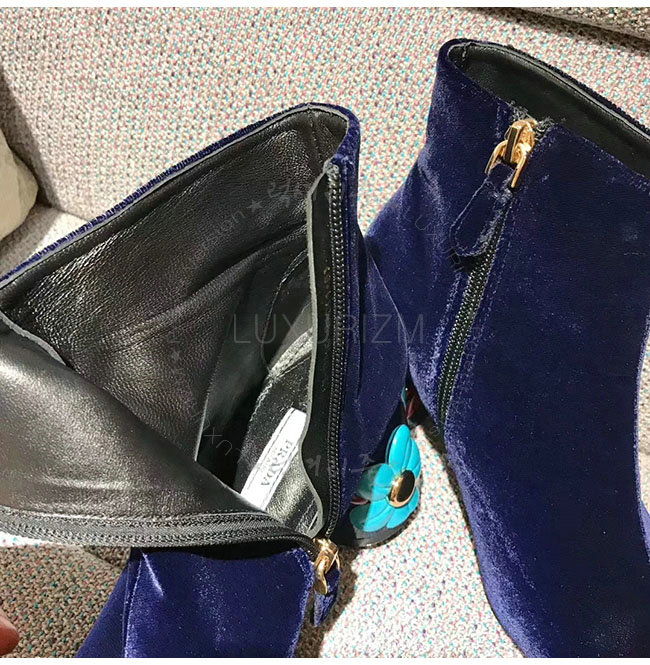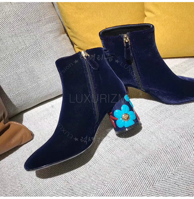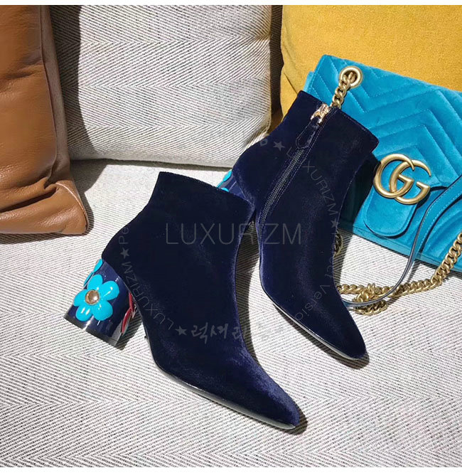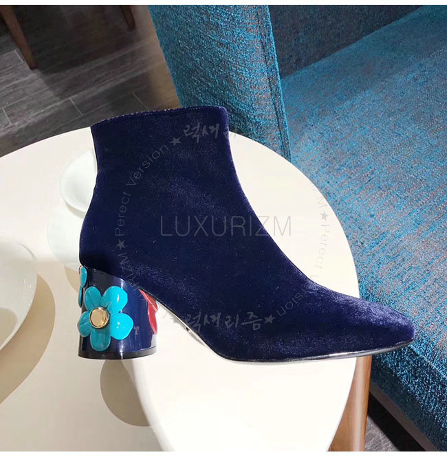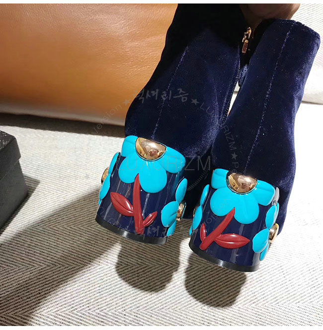 PRADA-1T697H 프라다 플라워 다크 블루 벨벳 앵클 부츠 여성용