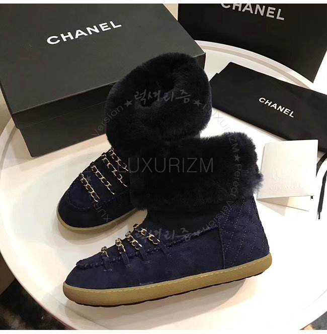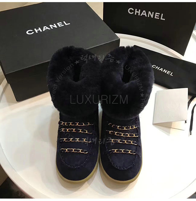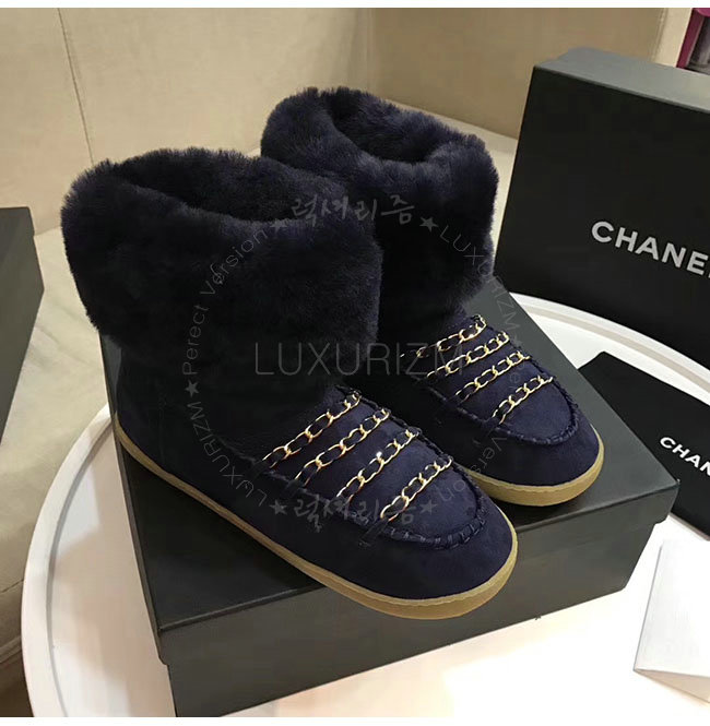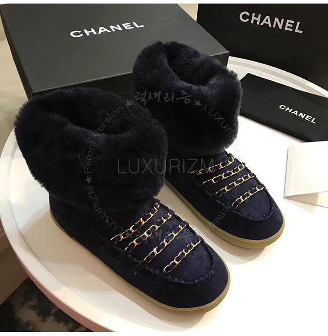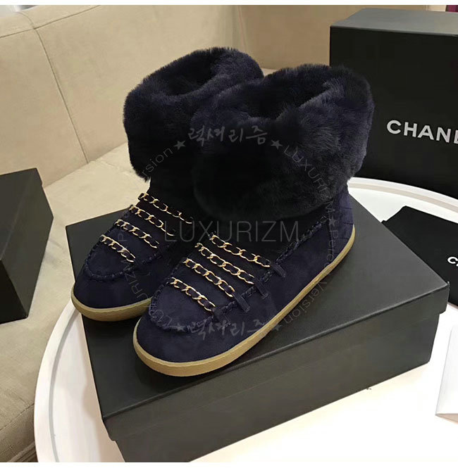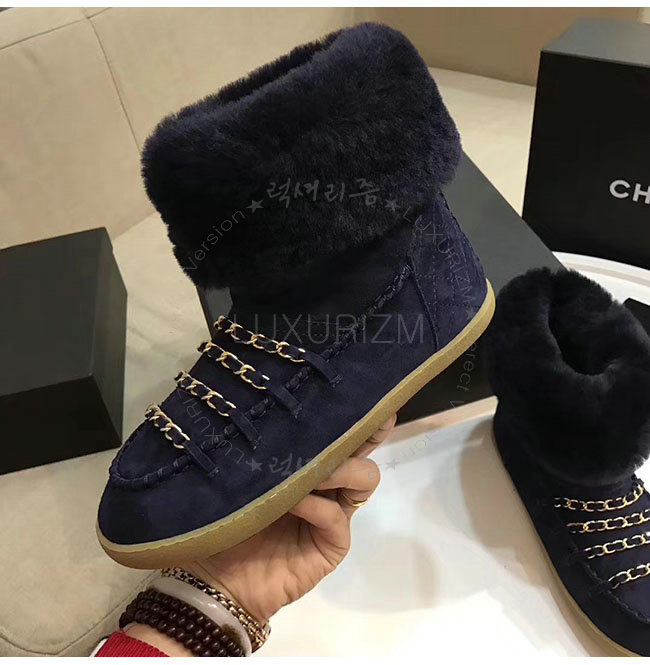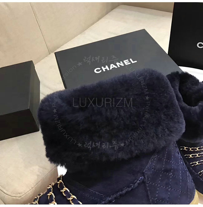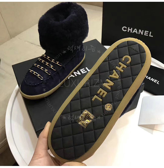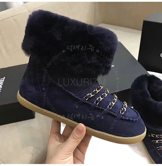 CHANEL-G33200 샤넬 시어링 네이비 스웨이드 가죽 쇼트 부츠 여성용