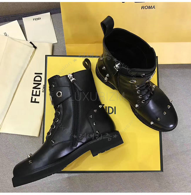 [스페셜오더]FENDI-8T6634 펜디 블랙 카프스킨 바이커 앵클 부츠 여성용