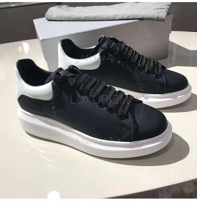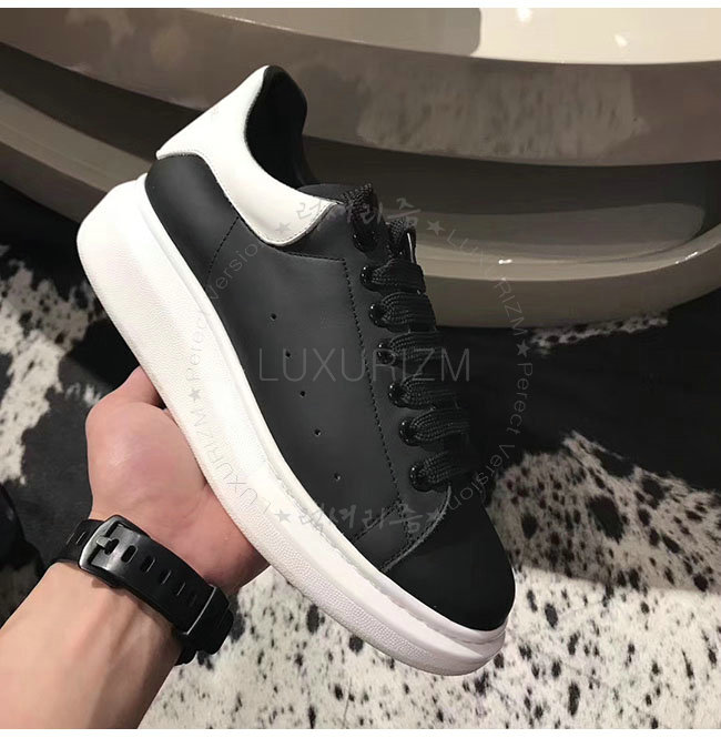 ALEXANDER MCQUEEN-485246 오버솔 블랙 화이트 가죽 스니커즈 남성용