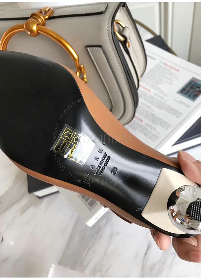 [스페셜오더]MARNI-SBMSZ06 마르니 브라운 송아지가죽 뮬 시피어 힐 펌프스 여성용