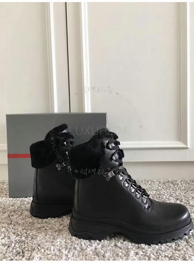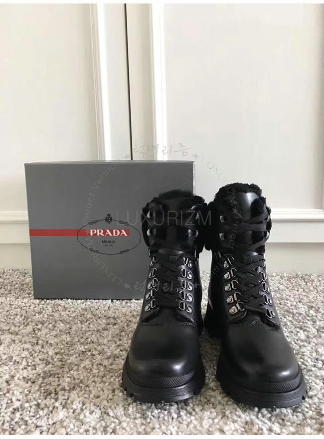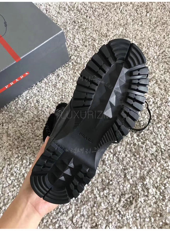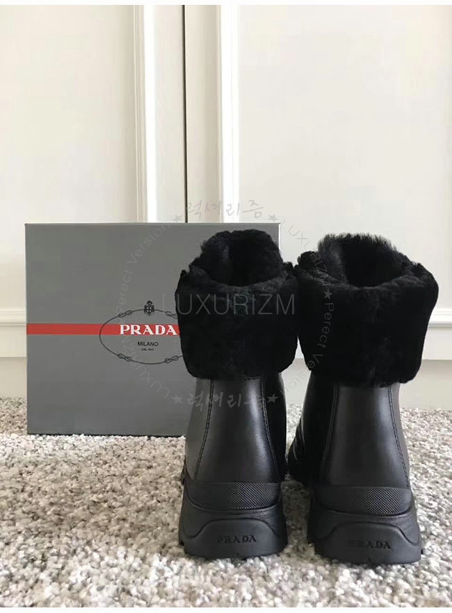 PRADA-3T6256 프라다 블랙 양가죽 앵클 부츠 여성용