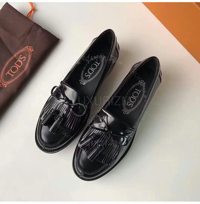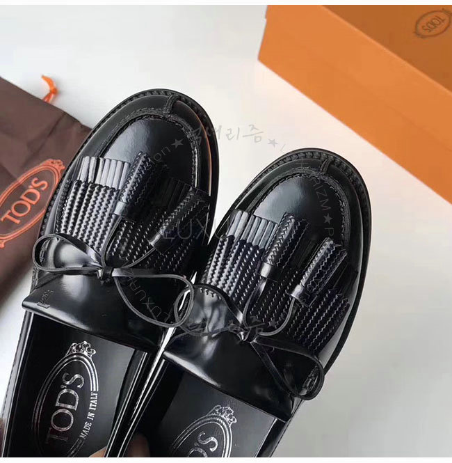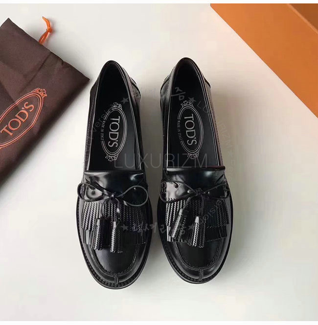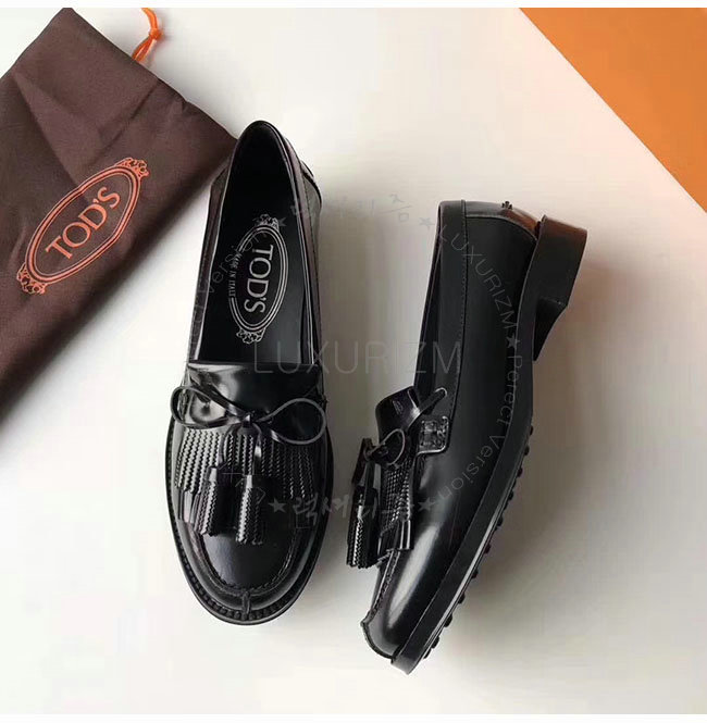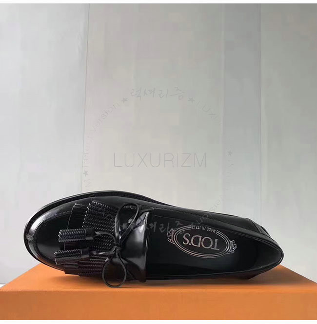 TODS-0RU0V060 토즈 블랙 가죽 모카신 여성용