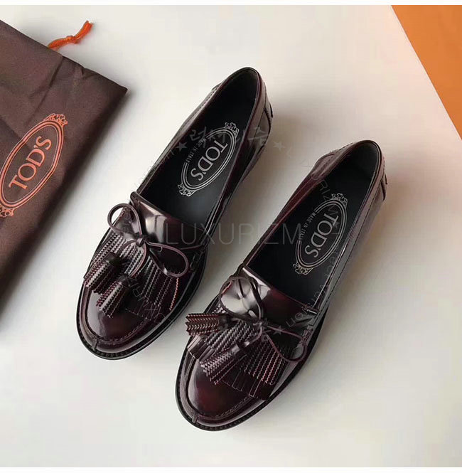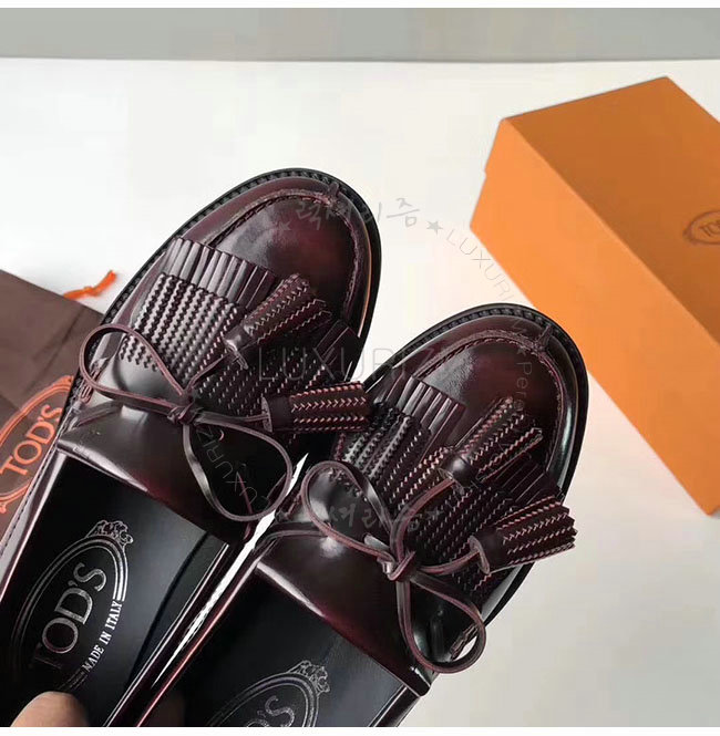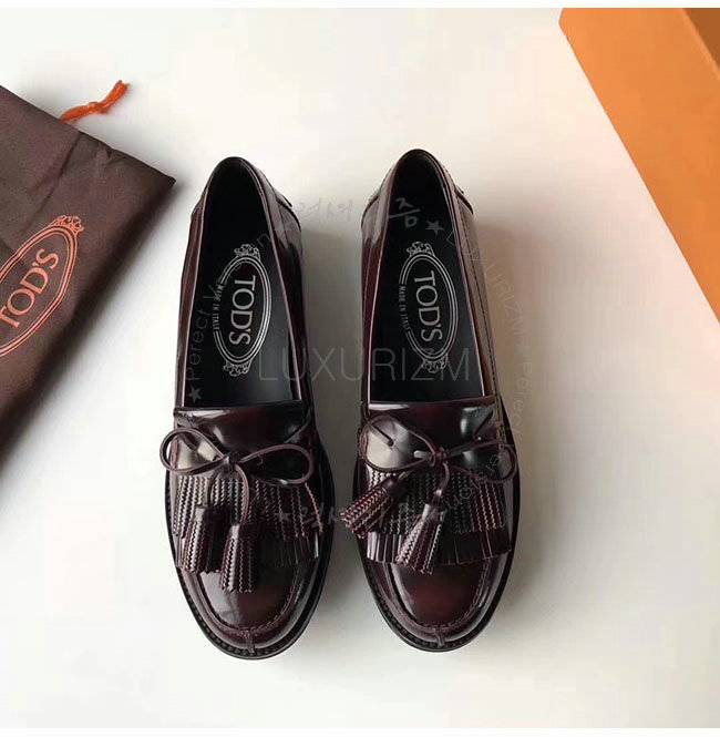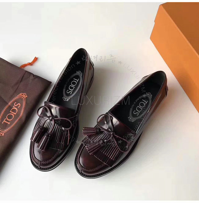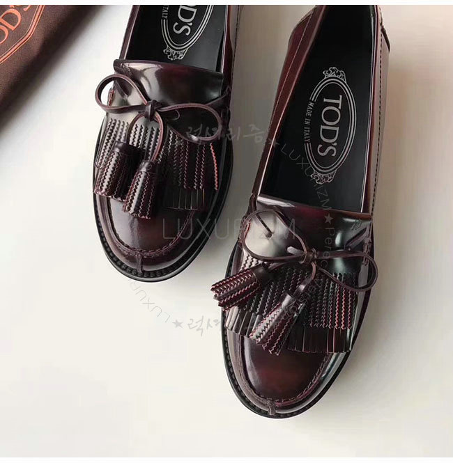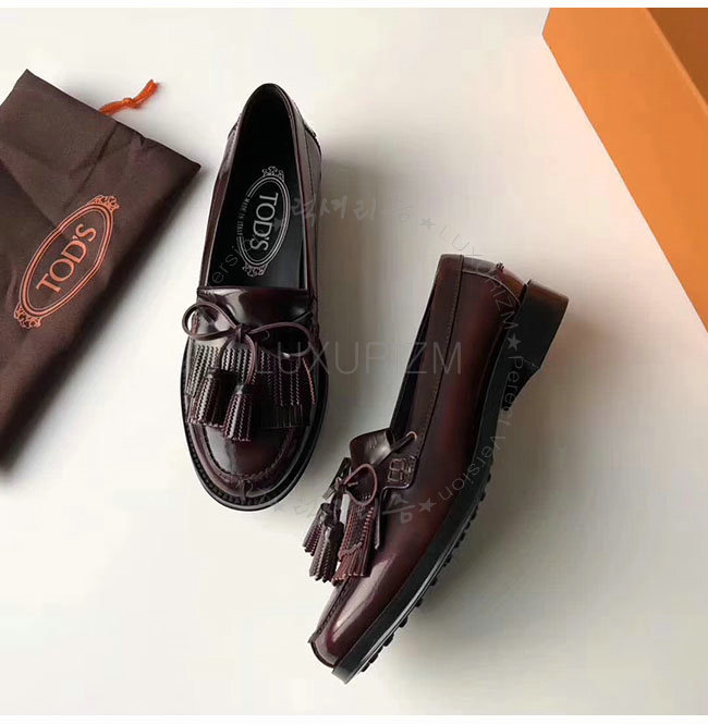 TODS-0RU0V060 토즈 와인 가죽 모카신 여성용